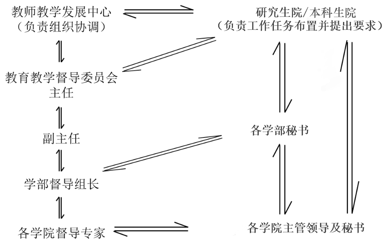 3.学期督导总结:由督导委员会向学校进行集中反馈。通过组织召开督导委员会全体会议,督导委员会主任、副主任向校领导和相关部门集中反馈督导工作中发现的共性问题和解决建议,相关部门和各教学单位应进行回应。