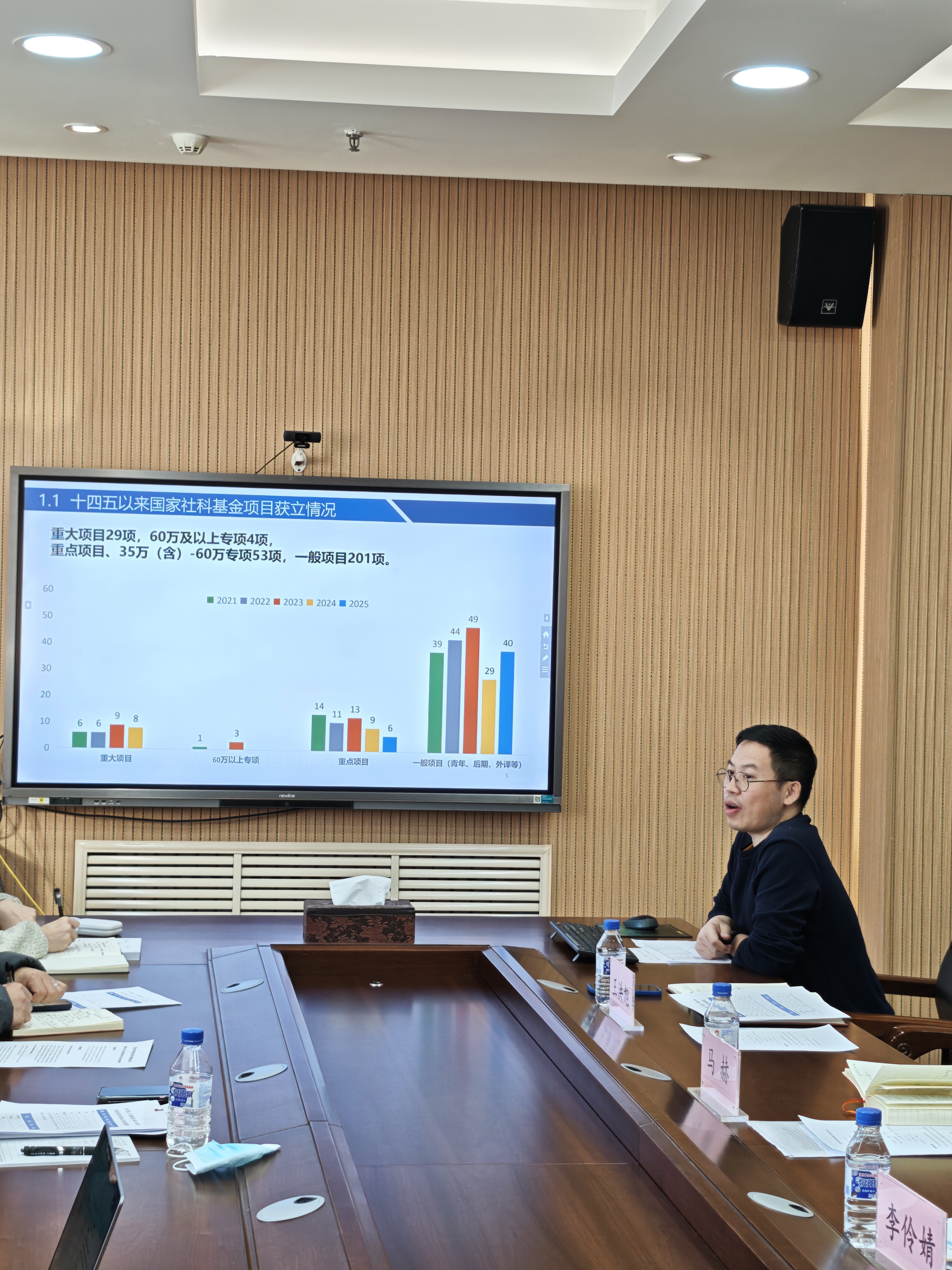 为了加强与学院科研工作的交流与沟通,解决学院在申报国家级项目过程中遇到的问题与难点,2025年12月3日下午14:00,学校社会科学研究院副经理马赫与项目科人员一行来至考古社会学院开展调研交流座谈。学院申报国家级项目教师与新入职教师参加座谈。座谈会由科研副经理彭善国主持。