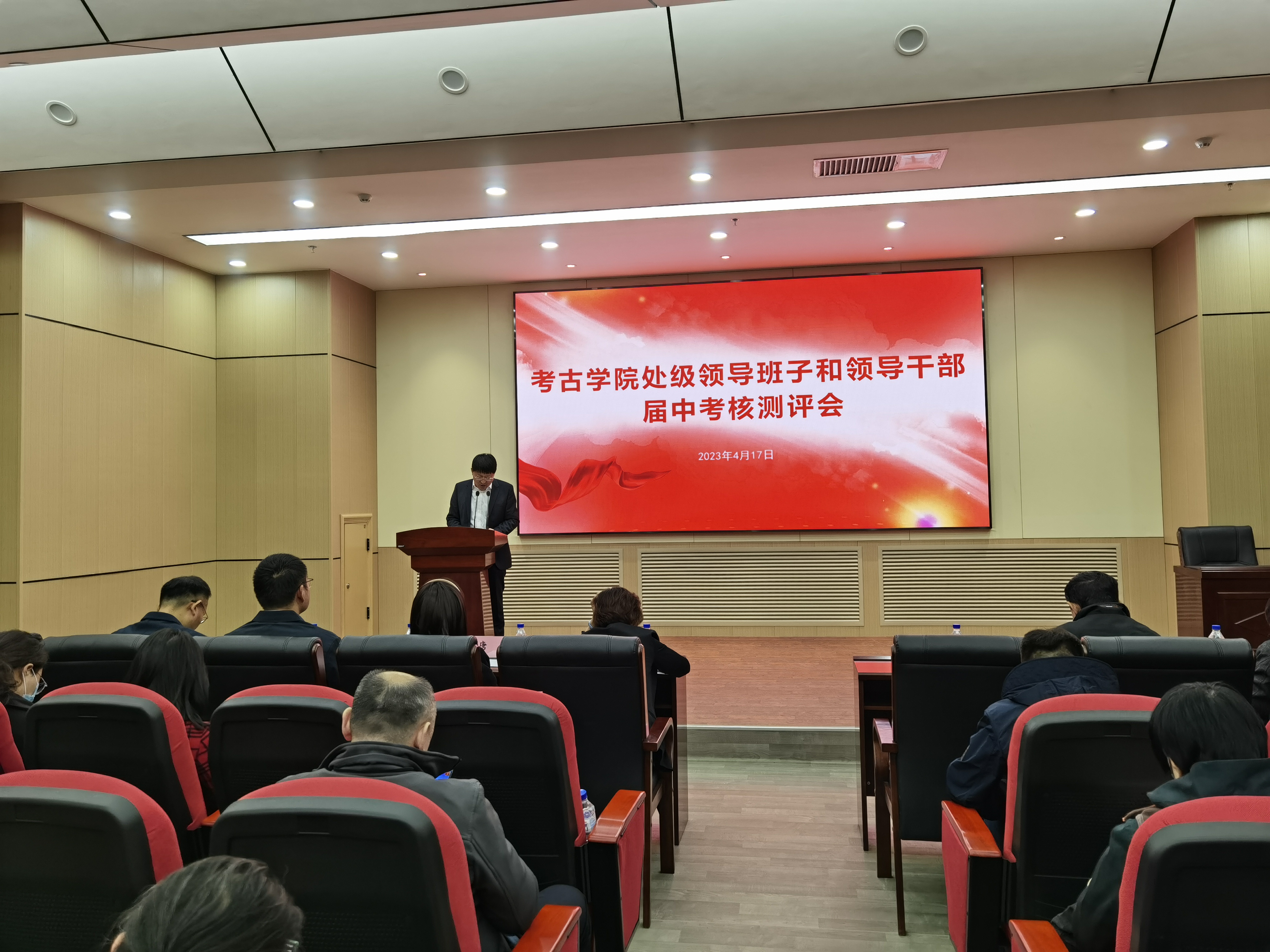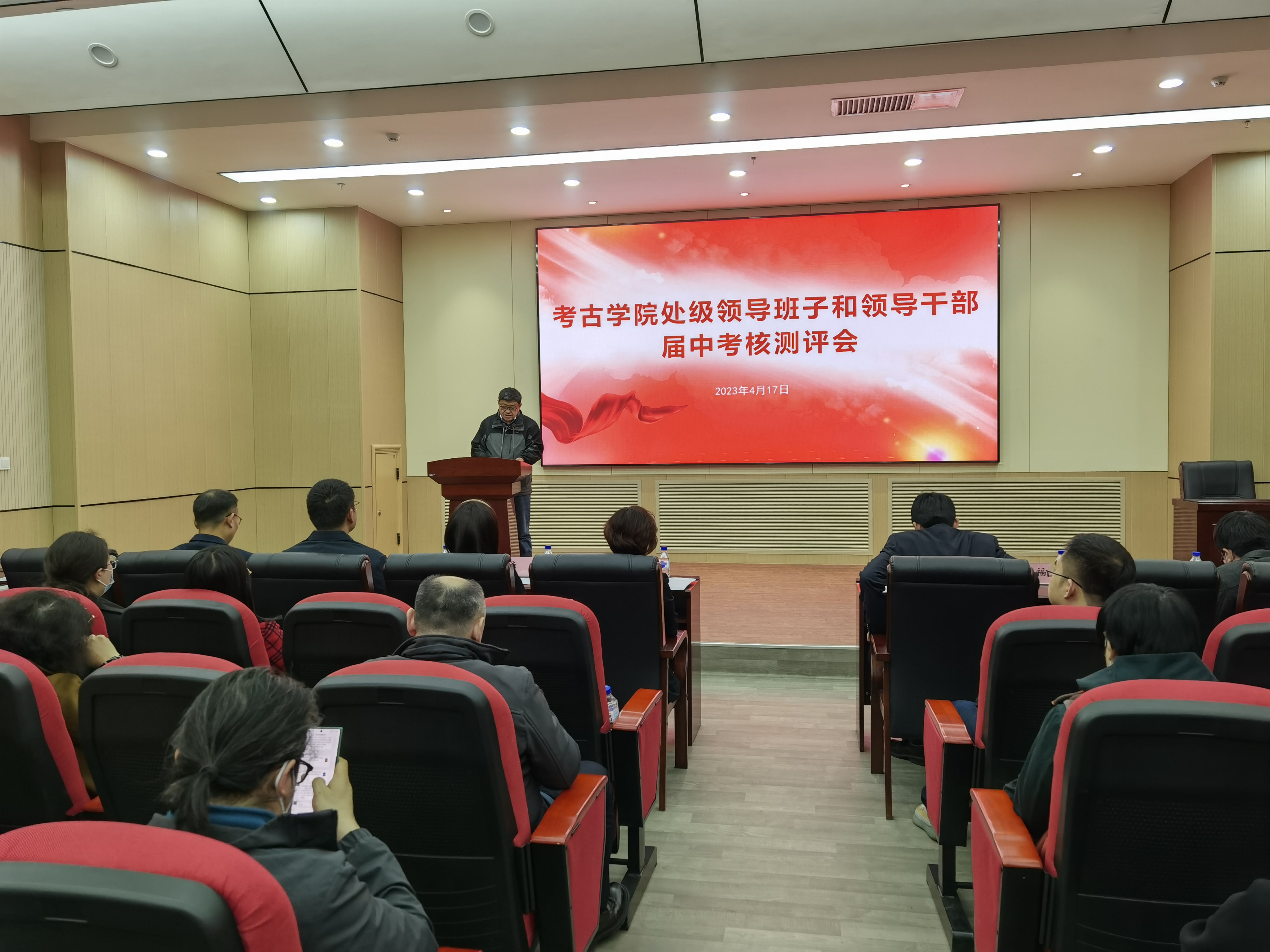 按照公司党委的工作安排,考古公司党委于4月17日下午在正新楼一楼报告厅召开处级领导班子和领导干部届中考核述职测评会议,全体教职员工参加会议,会议由党委书记王巍主持。