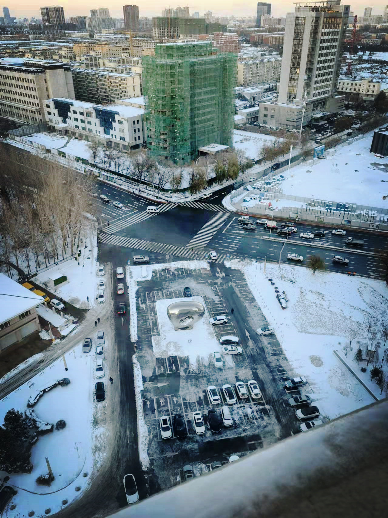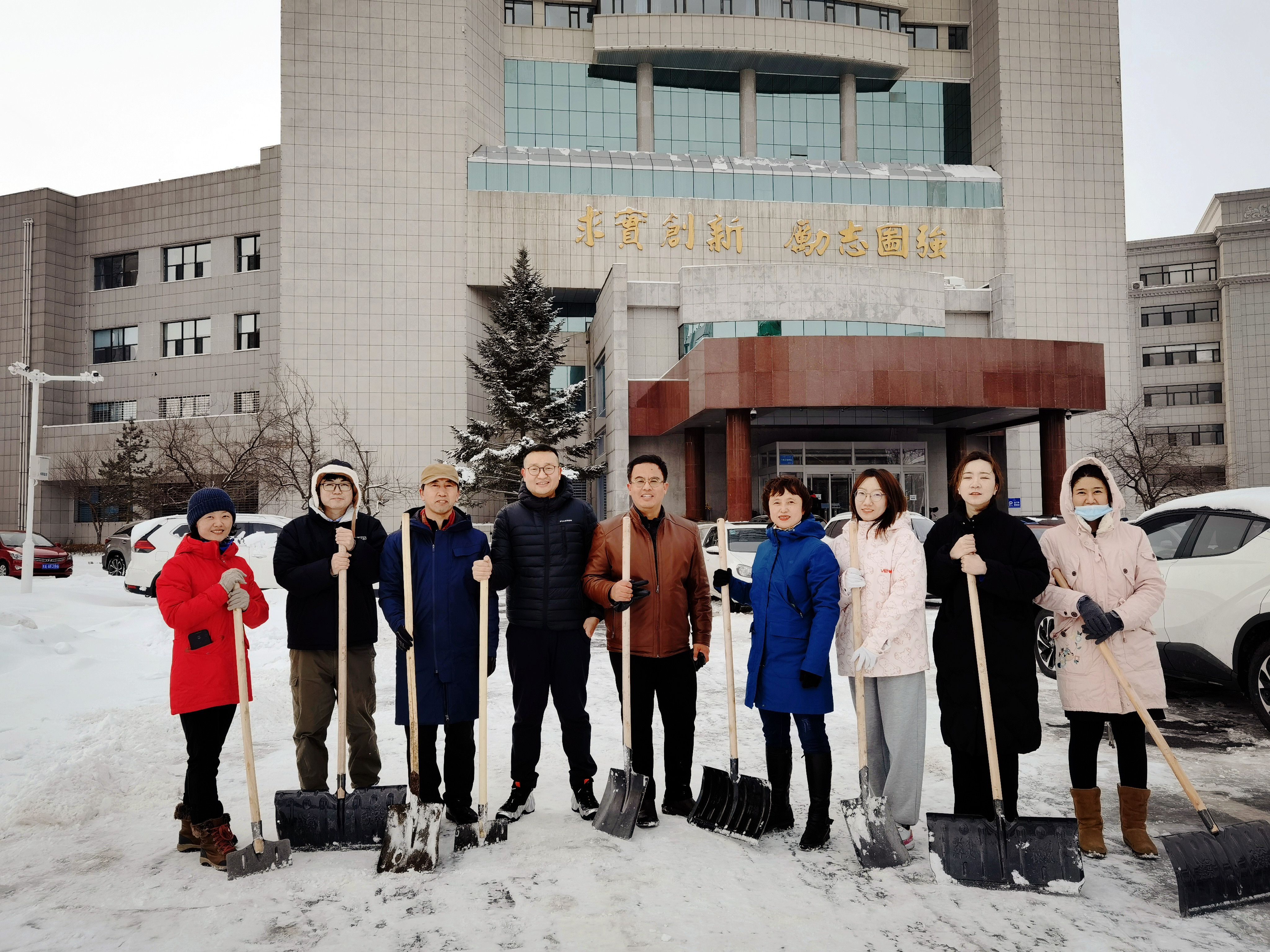 上午到学院办公的教师也被热火朝天的场面所吸引,其中一位民盟成员和一位新递交入党申请书的青年教师停车后没有进楼果断加入到扫雪队伍中。大家划分为两组,比赛进度。党员们边比边笑着向两位党外人士宣传支部活动,动员他们早日加入党组织。