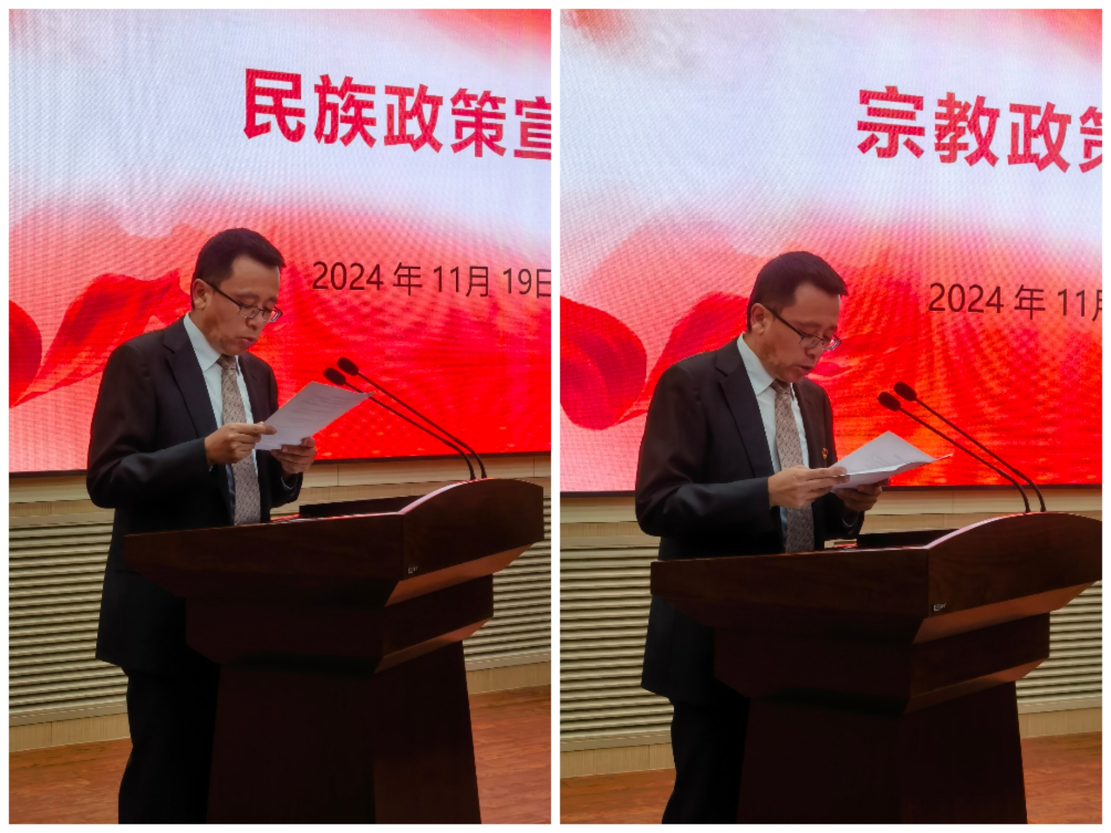述职测评会结束后,公司党委副书记侯建峰进行了民族、宗教政策宣讲,结合学院自身情况向参会人员讲解了宗教和民族政策对学院的特殊意义,提醒学院教职工在工作中一定要学懂、悟透党的宗教政策和民族政策,把握好原则,掌握好工作方法。