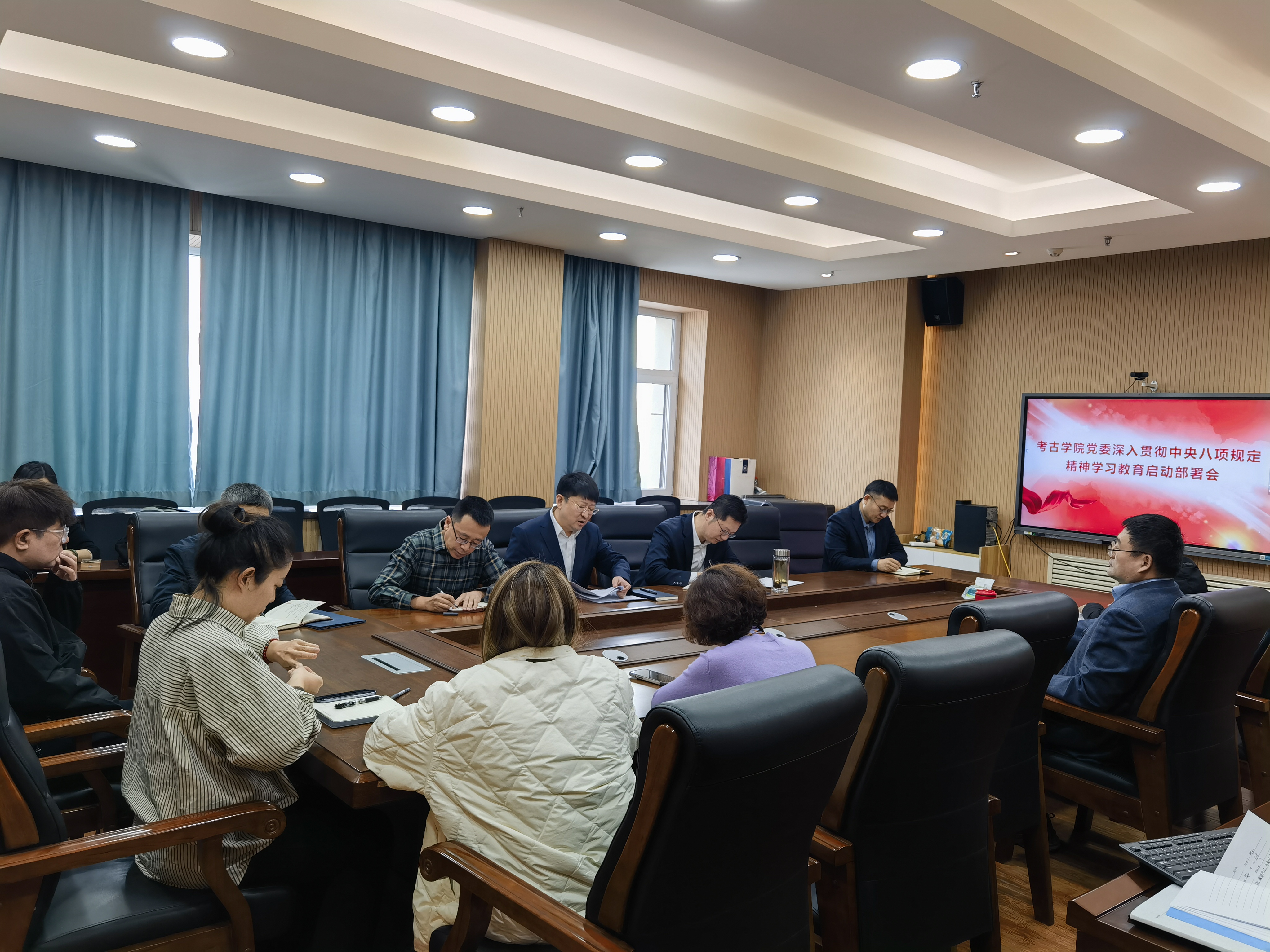 3月31日上午,考古公司党委在正新楼1608会议室召开深入贯彻中央八项规定精神学习教育动员部署会,公司党委委员、领导班子、党支部书记参会,会议由公司党委书记王巍主持。