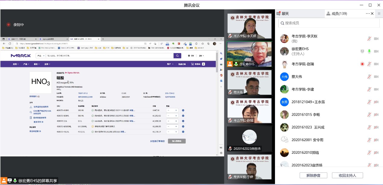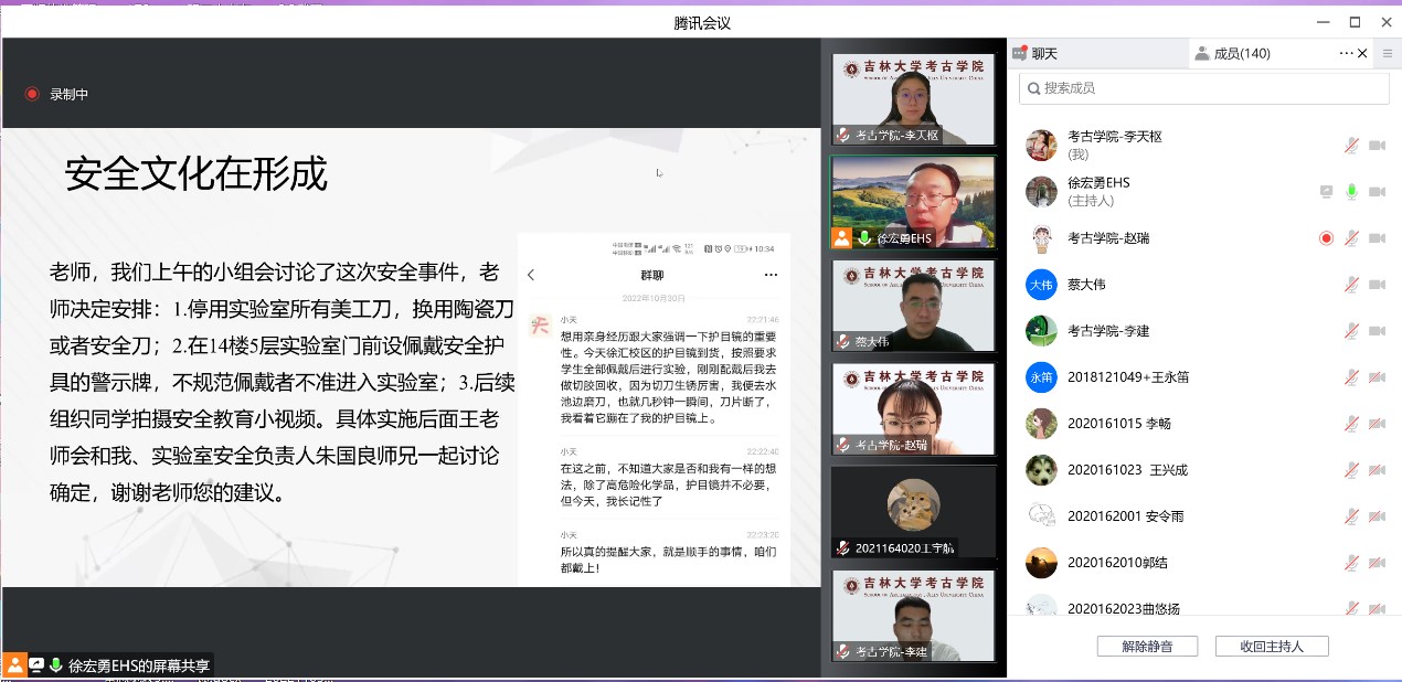 为进一步强化师生实验安全意识,提升师生实验风险防范能力,加强学院实验室安全管理水平,保障师生生命财产安全和科研教学工作的顺利进行,11月3日18:00,由betway西汉姆联平台主办、生物考古实验室协办的“实验室安全文化月”专题系列讲座(第一讲)通过腾讯会议线上开讲。华东理工大学安全环保办公室主任徐宏勇博士以实验室安全概论”为题betway西汉姆联平台部分教职工生物考古实验室全体实验人员及研究生、生命科学学院部分研究生共计140人安全培训讲座。讲座由betway西汉姆联平台实验教学中心主任蔡大伟主持。