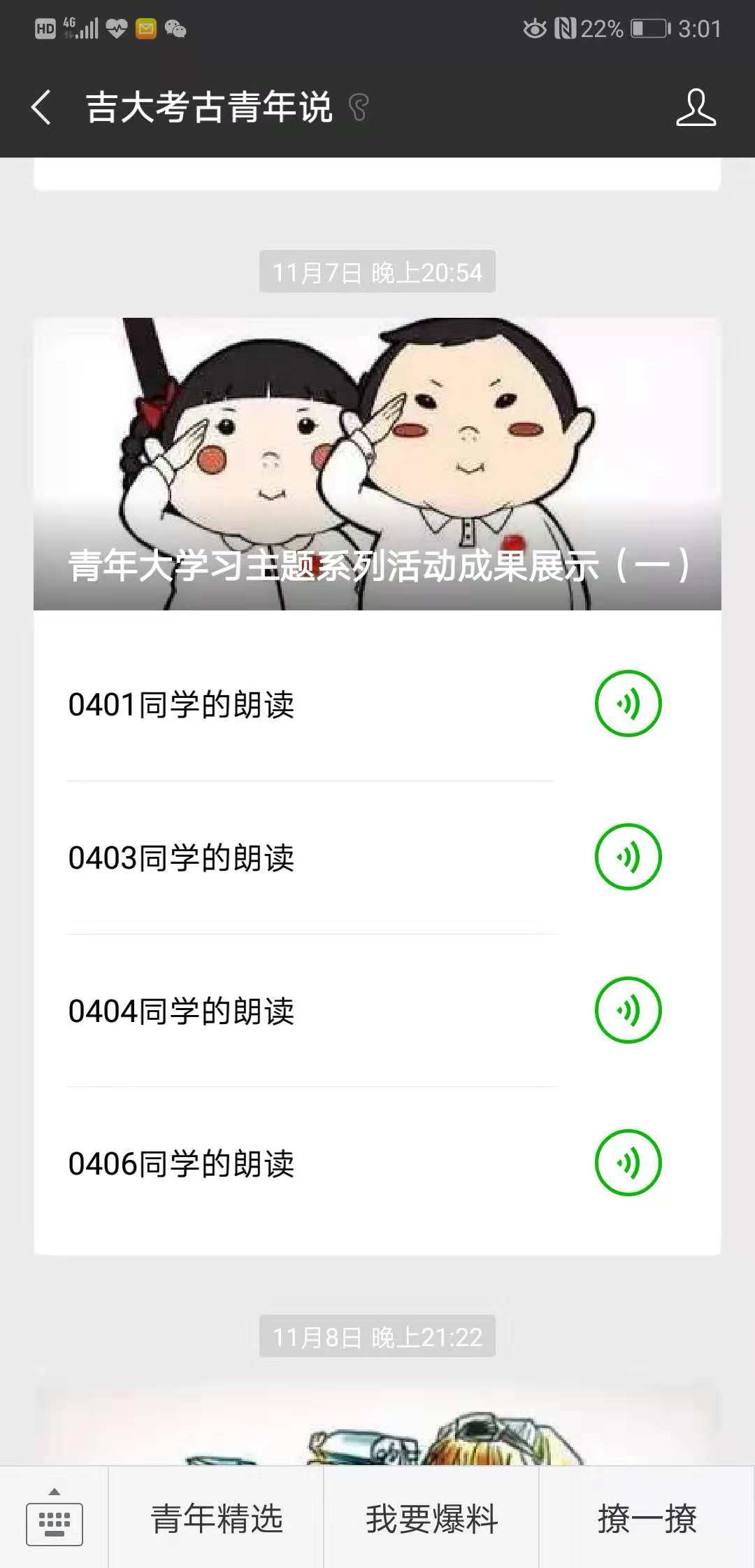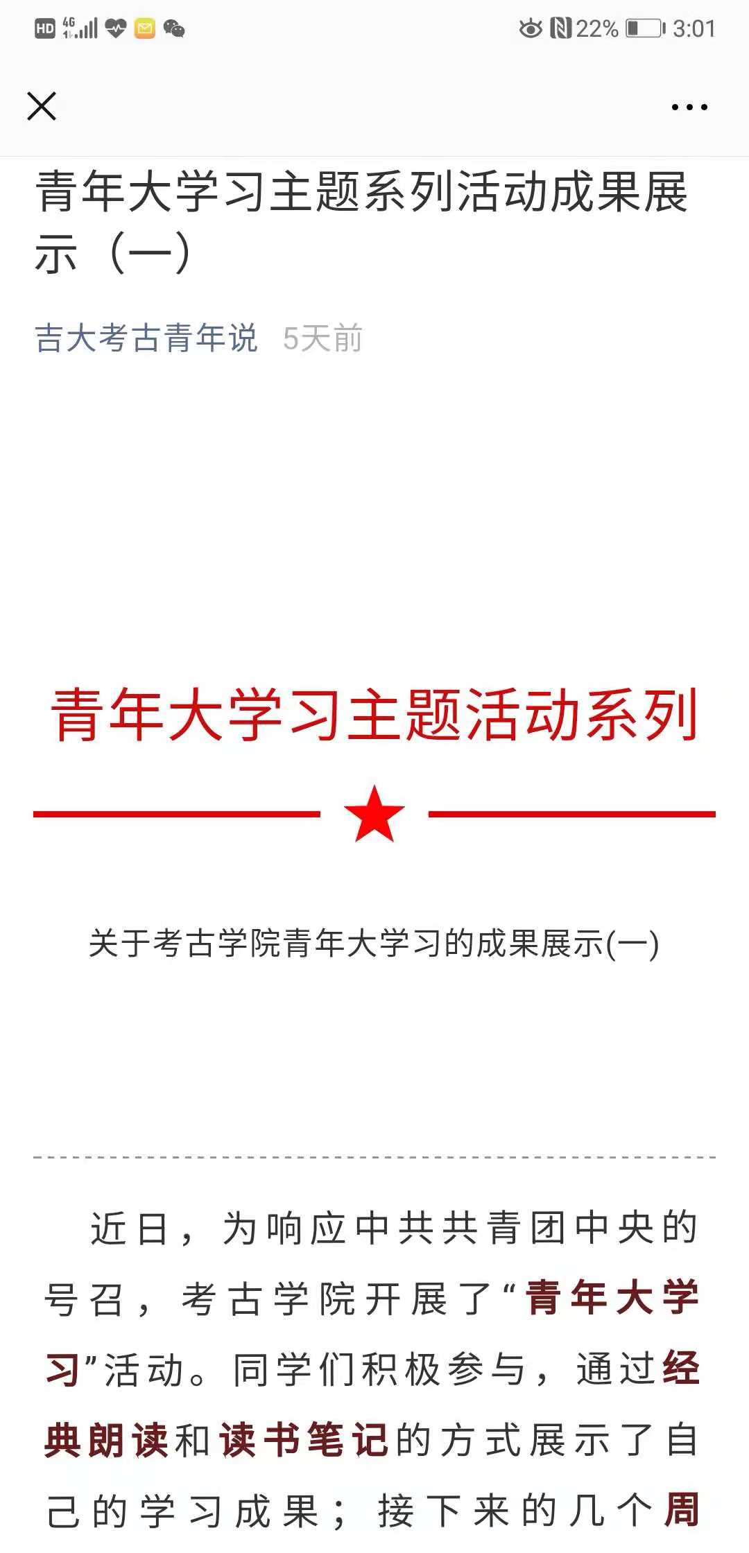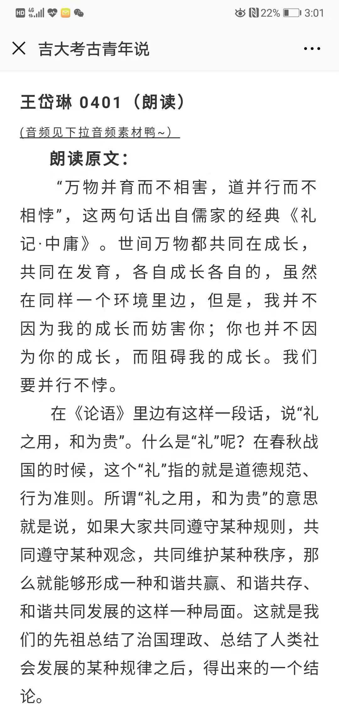 首先,本次推送中吉大考古青年说微信平台首先展示了霍奕然等四名同学的经典朗读音频。其中,我们聆听了betway西汉姆联平台同学们阅读了习近平总书记关于构建和谐社会的讲话,也听到了董和同学阅读总书记在北京大学讲话中的15个“金句”的音频,读懂了习近平总书记对青年的教诲,激发了betway西汉姆联平台同学们的学习热情。