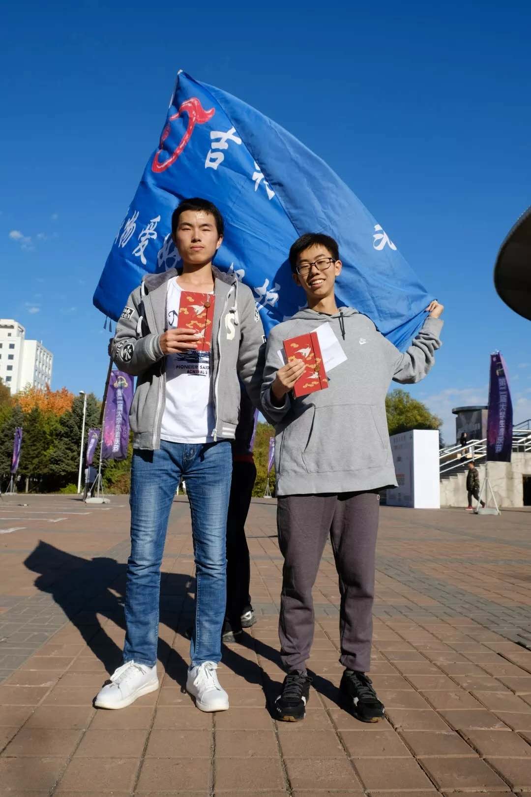 下午两点,第一组参赛队员成功通关所有关卡到达终点,成为本次比赛一等奖的获得者,从他们的汗水中流露出经过各路关卡时的努力付出。紧接着参赛者们陆续到达终点完成比赛,并且依照名次领取了我们准备的精美的文化创意产品。其中,物理学院吉云奇、熊亦潇同学以45分钟的成绩夺得本次竞赛的第一名,外国语学院朱晓玉与betway西汉姆联平台张雅婷同学获得第二名,汉语国际教育硕士胡娇、韩国梅同学获得第三名。结束时,所有关卡处的志愿者一起来到体育馆门前合影留念,并领取到文物爱好与保护者协会专属精美明信片一张。
