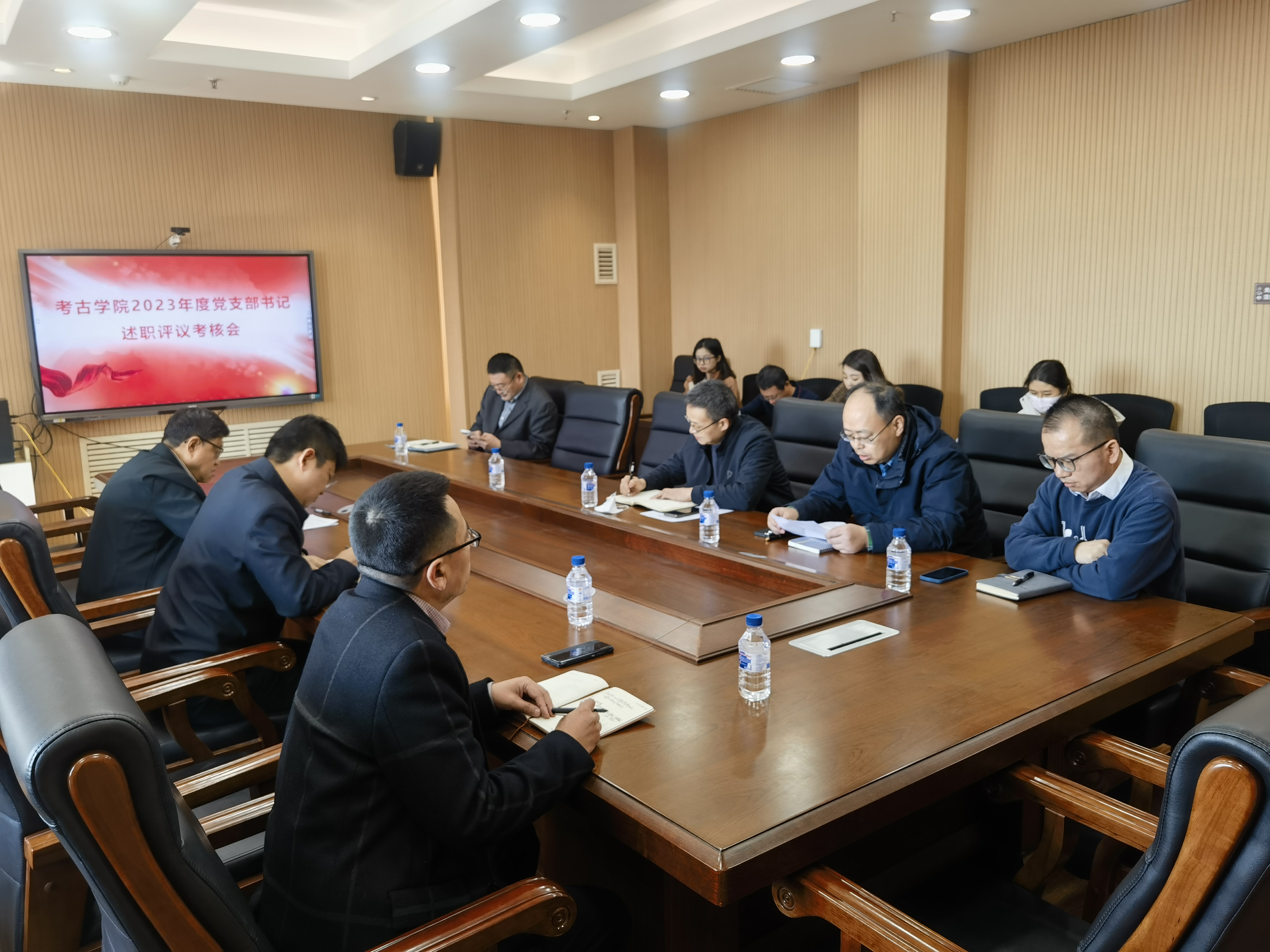 2024年3月29日上午,考古公司党委在正新楼1608会议室组织召开2023年度党支部书记述职测评会。学院领导班子成员、党委委员、党支部书记参加了测评会。会议由考古公司党委书记王巍主持。