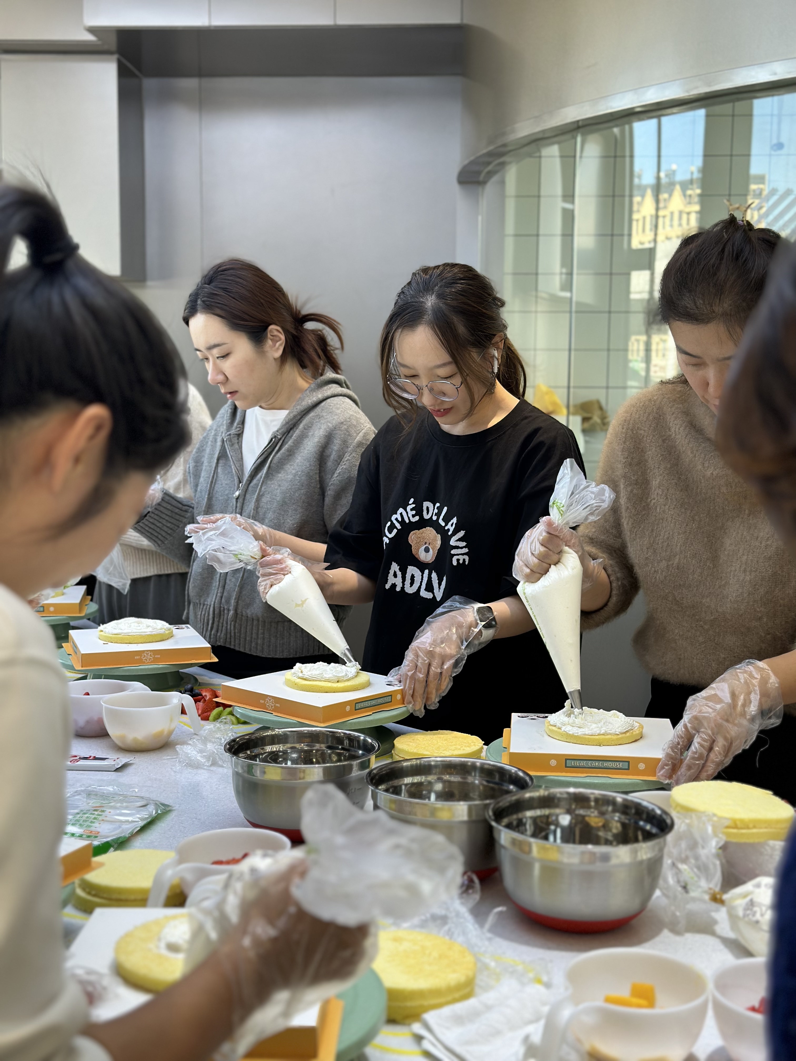 为组织好本次烘焙活动,betway西汉姆联平台精心挑选烘焙场地与食材,最终确定离校园最近方便大家出行的丁香西饼屋(国泰店)。烘焙活动当天,丁香西饼屋的西点师向大家介绍了要做的蛋糕类型、用料和操作用具,一边细心讲解制作方法,一边现场操作,大家迫不及待地跟随着步骤亲自动手,在蛋糕胚上涂抹奶油、摆放水果,欣赏各自的作品并拍照留念,现场充满了欢声笑语。