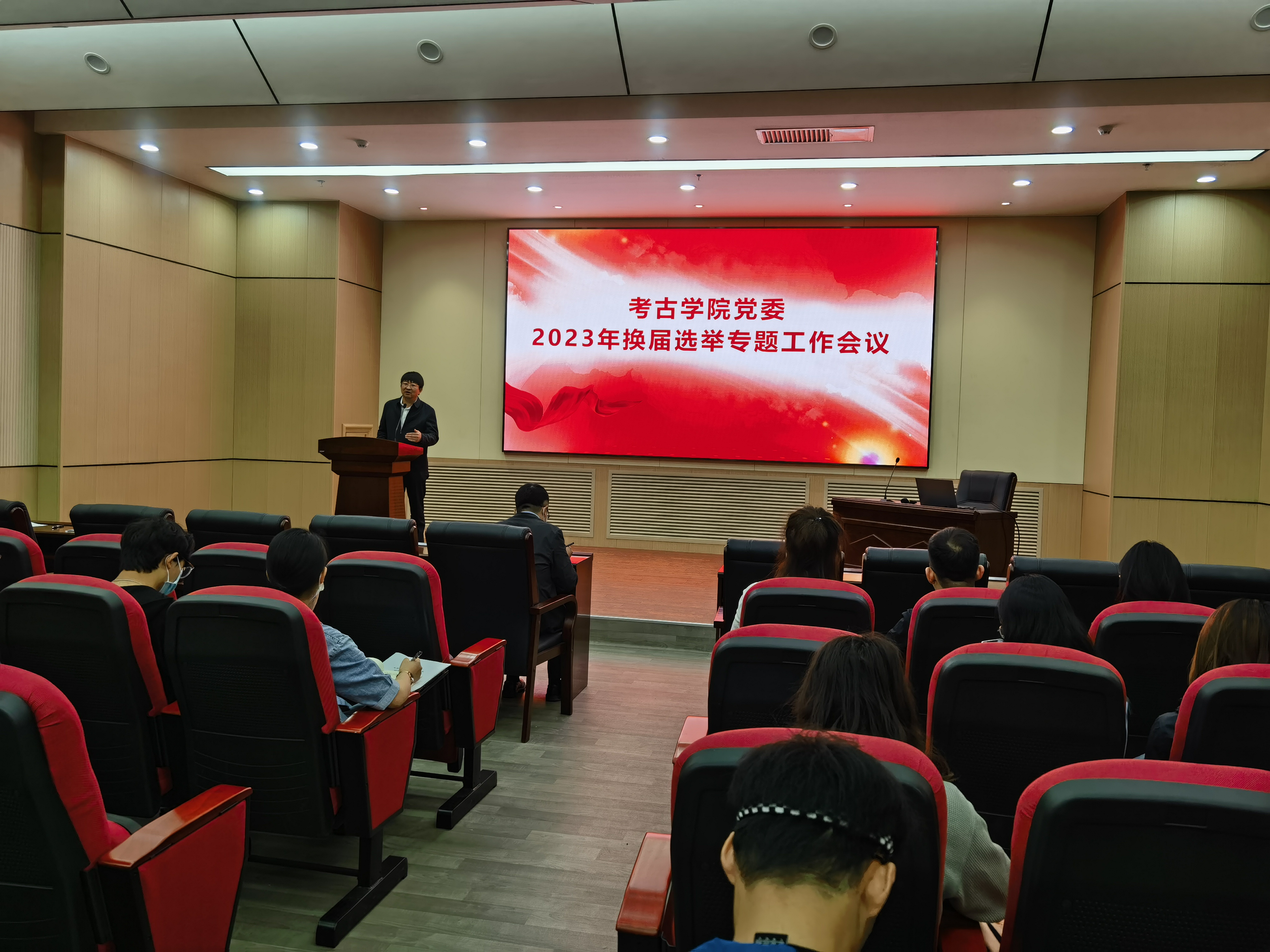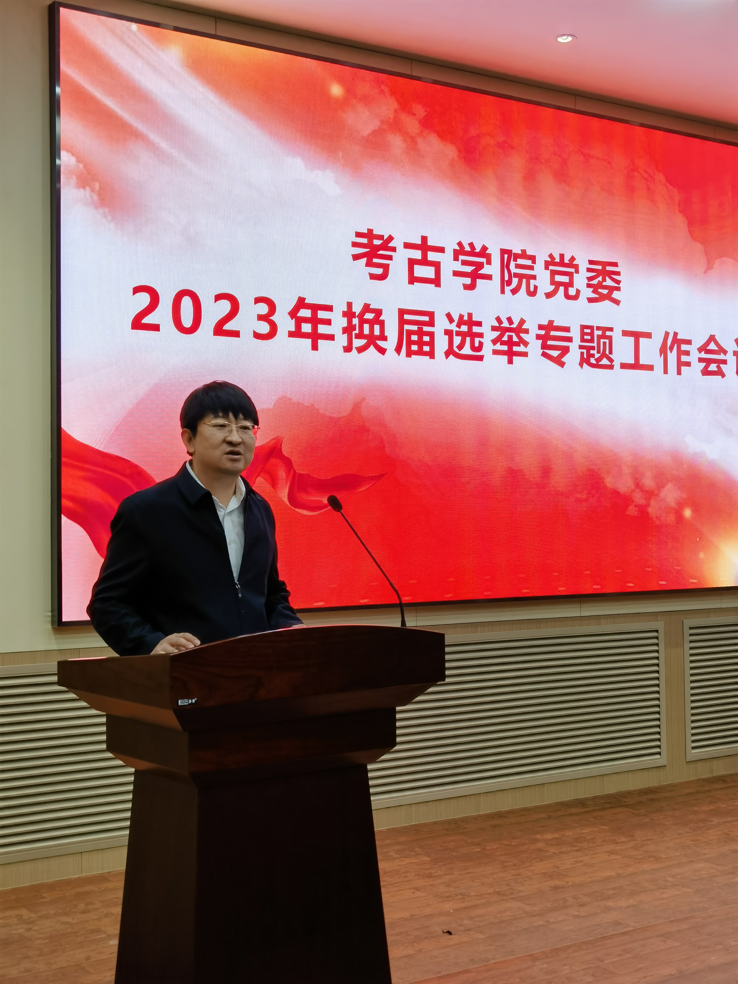 5月16日上午,考古公司党委2023年换届选举专题工作会议在正新楼一楼报告厅召开。公司党委书记王巍、公司党委副书记、纪委书记侯建峰、各党支部书记、党支部委员会成员参加会议。会议由党委书记王巍主持。