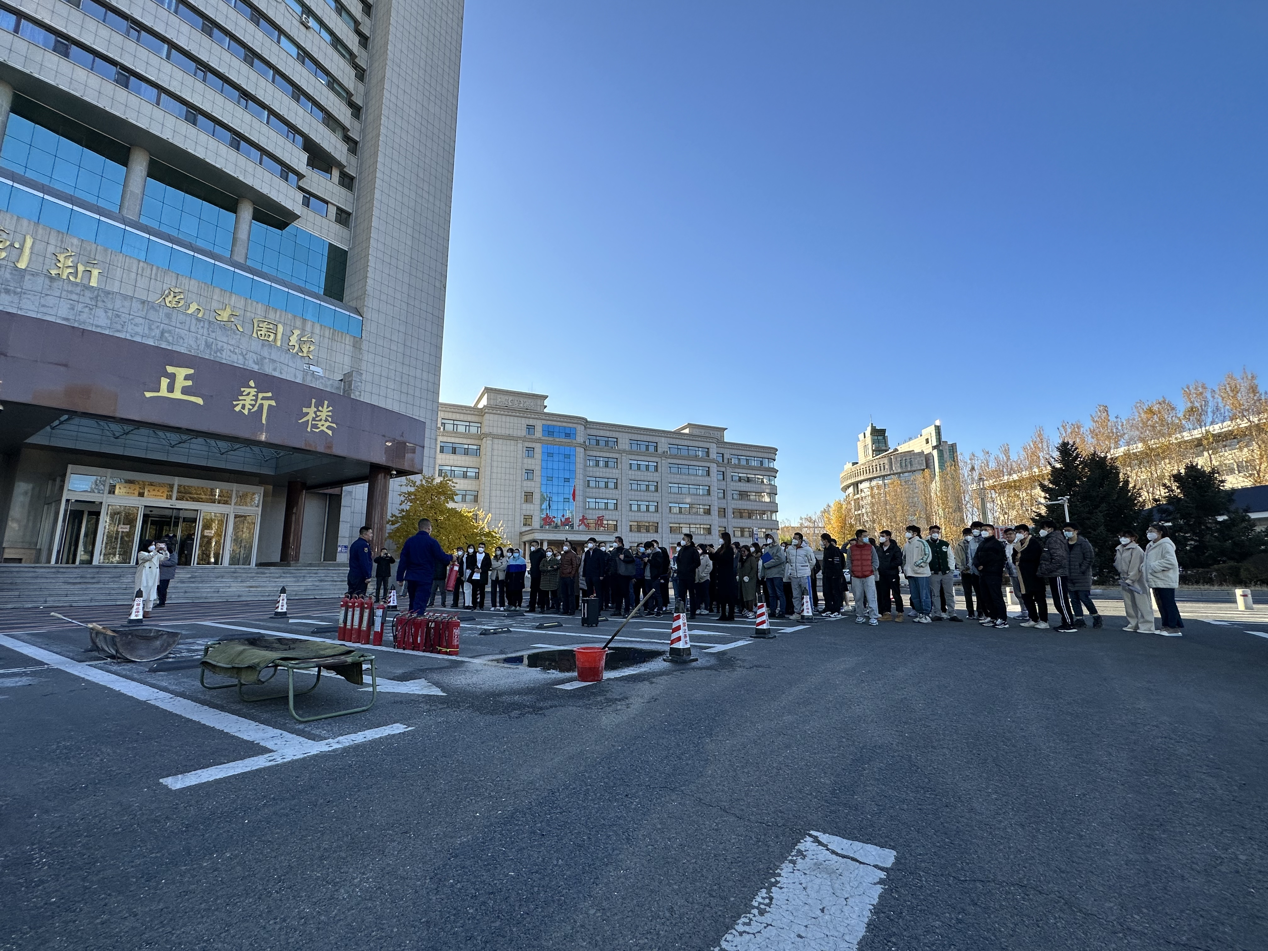 讲座结束后,betway西汉姆联平台与人工智能学院在正新楼门前开展了火灾疏散逃生演练。保卫处在正新楼门前燃放了烟雾弹,随后警报响起,在消防广播的提示下,全体师生迅速从安全出口疏散撤离。全部人员撤离到安全区域后,在正新楼门前空地设置模拟火情,董立明为大家讲解了二氧化碳灭火器、干粉灭火器、灭火毯的使用方法及注意事项,并指导师生对初期火灾进行扑救。