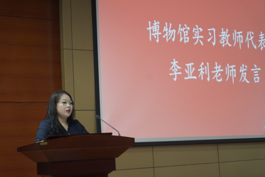 大会第一项为实习带队教师讲话。田野考古实习带队教师林森老师对考古实习基地进行了介绍,并对即将开始的实习工作提出期望与要求,与同学们一起共勉。博物馆实习带队教师李亚利老师对文博实习计划与安排进行阐述,对实习要求和注意事项进行提示,预祝同学们实习工作学有所得。