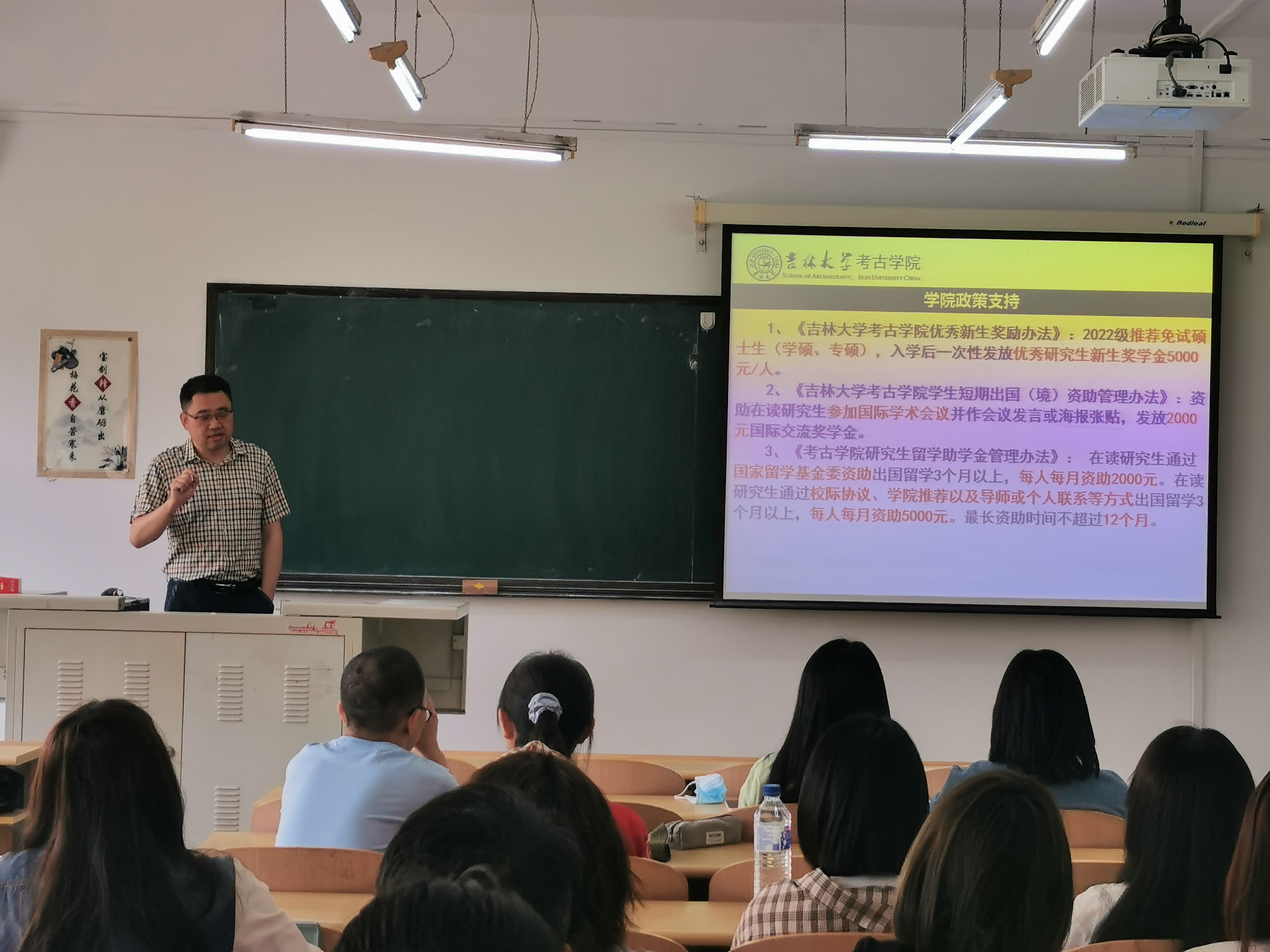 吴敬老师首先向到场同学发放了公司研究生招生宣传册,然后结合实际情况,详细介绍了吉大考古的发展历程、研究生招生方向以及校院两级奖助政策,并向同学们进一步阐释了本校员工“选择吉大,选择的是人生;留在长春,抓住的是未来”。吴敬老师希望同学们能够在自身合理定位的基础上,寻找到有效的学习方法,积极报考吉大考古。最后,吴敬老师和王春雪老师还对同学们关心的问题进行了细心的解答。