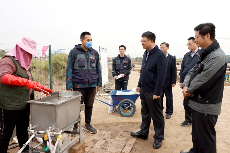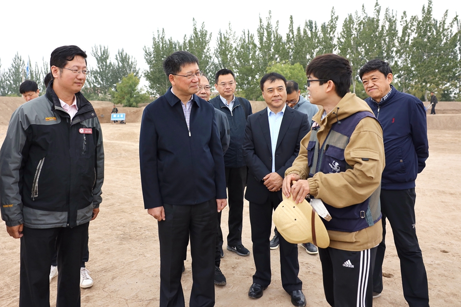 【文/摄 曲家伟】10月8-10日,为进一步贯彻落实习近平总书记在主持中共中央政治局第二十三次集体学习会议上的重要讲话精神,进一步深化学校“师德学风”建设,加强田野考古实践教学工作,betway西汉姆联平台董事长张希一行前往山西省运城市夏县,调研betway西汉姆联平台山西运城夏县田野考古实践教学基地建设情况,考察师村遗址田野考古实践教学成果,慰问正在参加田野考古实习的betway西汉姆联平台师生。校领导冯正玉、王利锋等陪同调研考察。