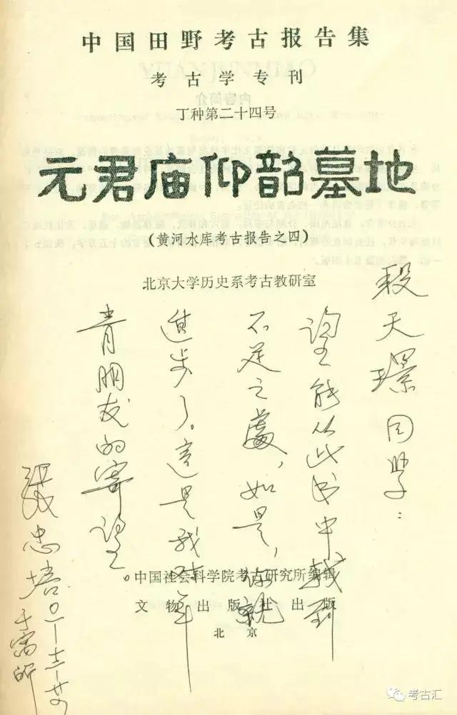 元君庙仰韶墓地书名页上的张忠培先生签字