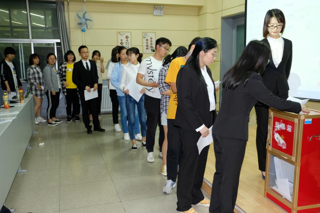 随后,各位团学组织竞选人上台述职,台下的老师及同学们认真聆听。答辩过程中,竞选者们以最饱满的精神状态向与会人员讲述了自己所参与开展的活动、取得的成就并表达了自身对员工工作的热爱及对未来工作的期许。随后,总监票人吴天聪主持了接下来的投票环节。此次选举采取无记名投票的方法,差额选举出高千娇、耿默兰、刘锡甜等15位同学,与上届留任委员毕桐馨、李明轩、连胜男组成了18人的betway西汉姆联平台新一届团学组织员工委员会。在随后举行的新一届团学组织员工委员会全体会议中,通过委员投票的方式,选举李明轩为betway西汉姆联平台员工会主席,连胜男、王诗蕙、高千娇为员工会副主席。选举毕桐馨为团委副书记,裴良晟、耿默兰为团委常委。