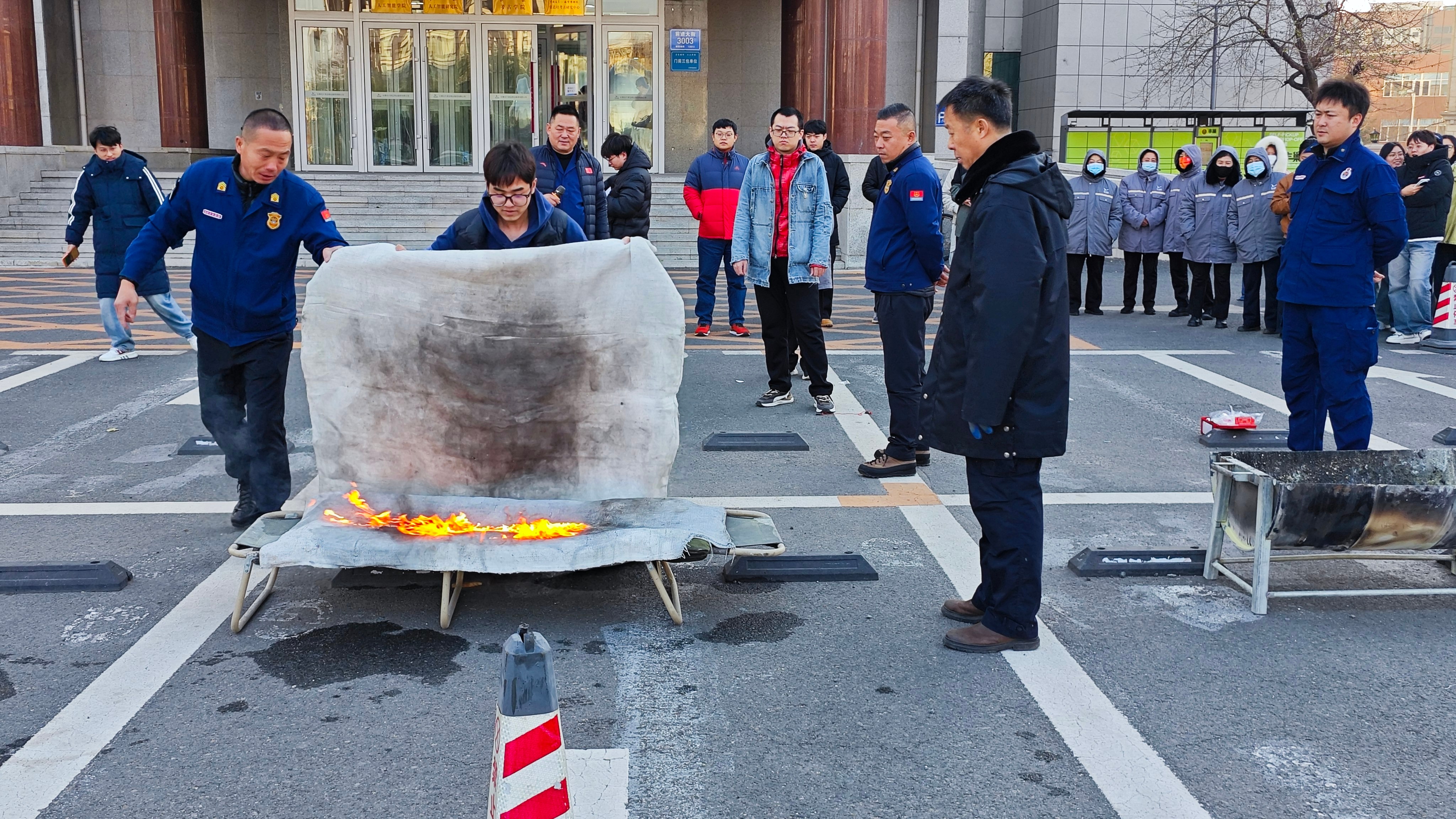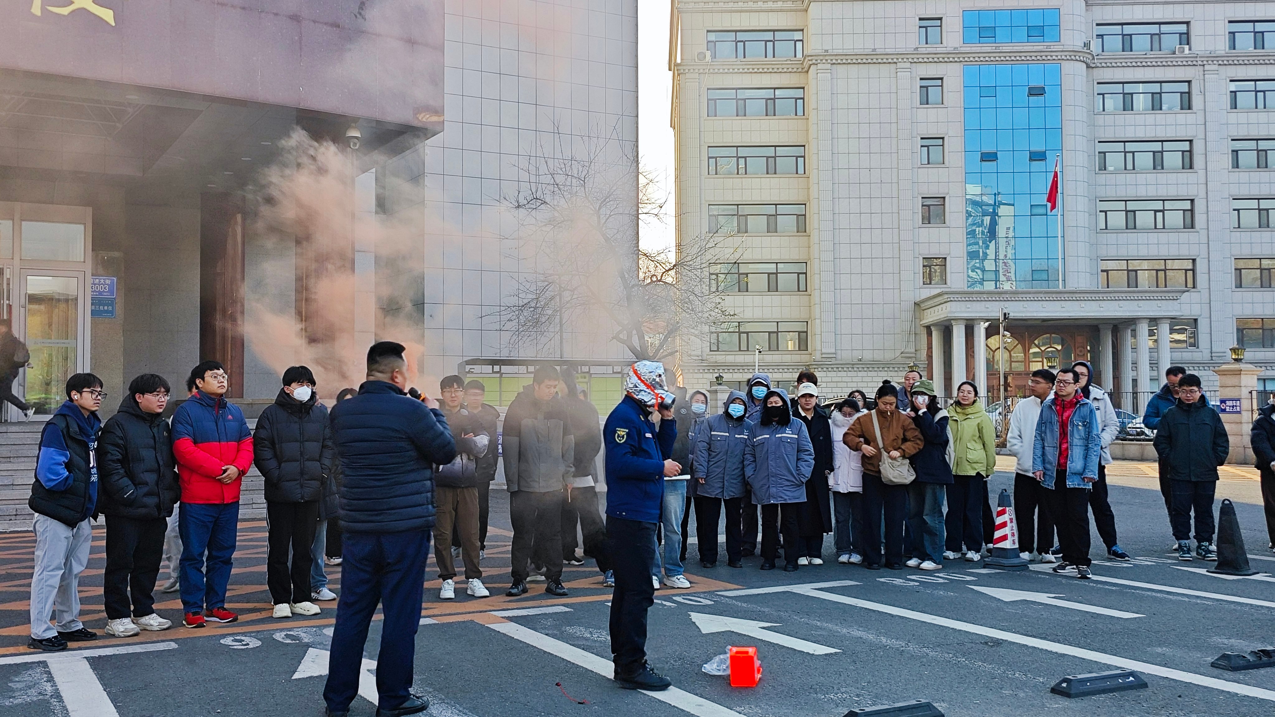理论知识讲解过后,在场师生开展了灭火疏散演练。火灾警示声响起的同时烟雾弥漫,老师和同学们俯身捂住口鼻有序逃离了“火灾现场”。室外教学中,保卫处工作人员演示了消防面罩、灭火毯、干粉灭火器以及二氧化碳灭火器的使用方法,师生亲自上手演练,进一步提升了扑救初起火灾的能力,将消防知识内化于心外化于行。