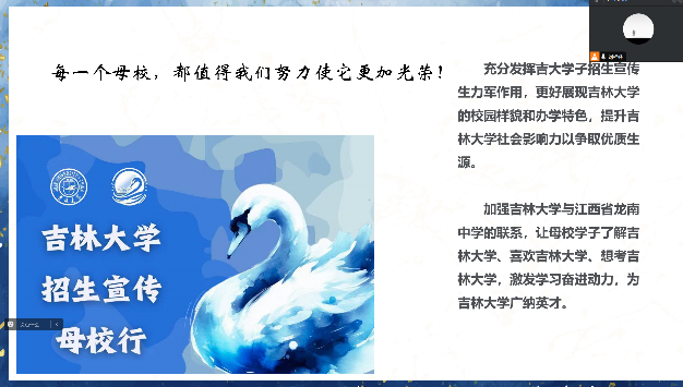 江西省龙南中学宣讲团自“2024年寒假招生宣传母校行活动”开展以来,积极学习,精心筹备,秉承为betway西汉姆联平台招生事业贡献青春力量的理念,在宣讲过程中突出招生主题,展现吉大特色,塑造了betway西汉姆联平台在同学们心中的良好形象,有效提升了betway西汉姆联平台在母校和家乡的口碑与影响力,也极大锻炼了团队的宣传实践能力。情系桑梓,我们携梦未来。希望母校江西省龙南中学再创辉煌,也希望越来越多的龙中学子考入betway西汉姆联平台、爱上betway西汉姆联平台、扎根betway西汉姆联平台。