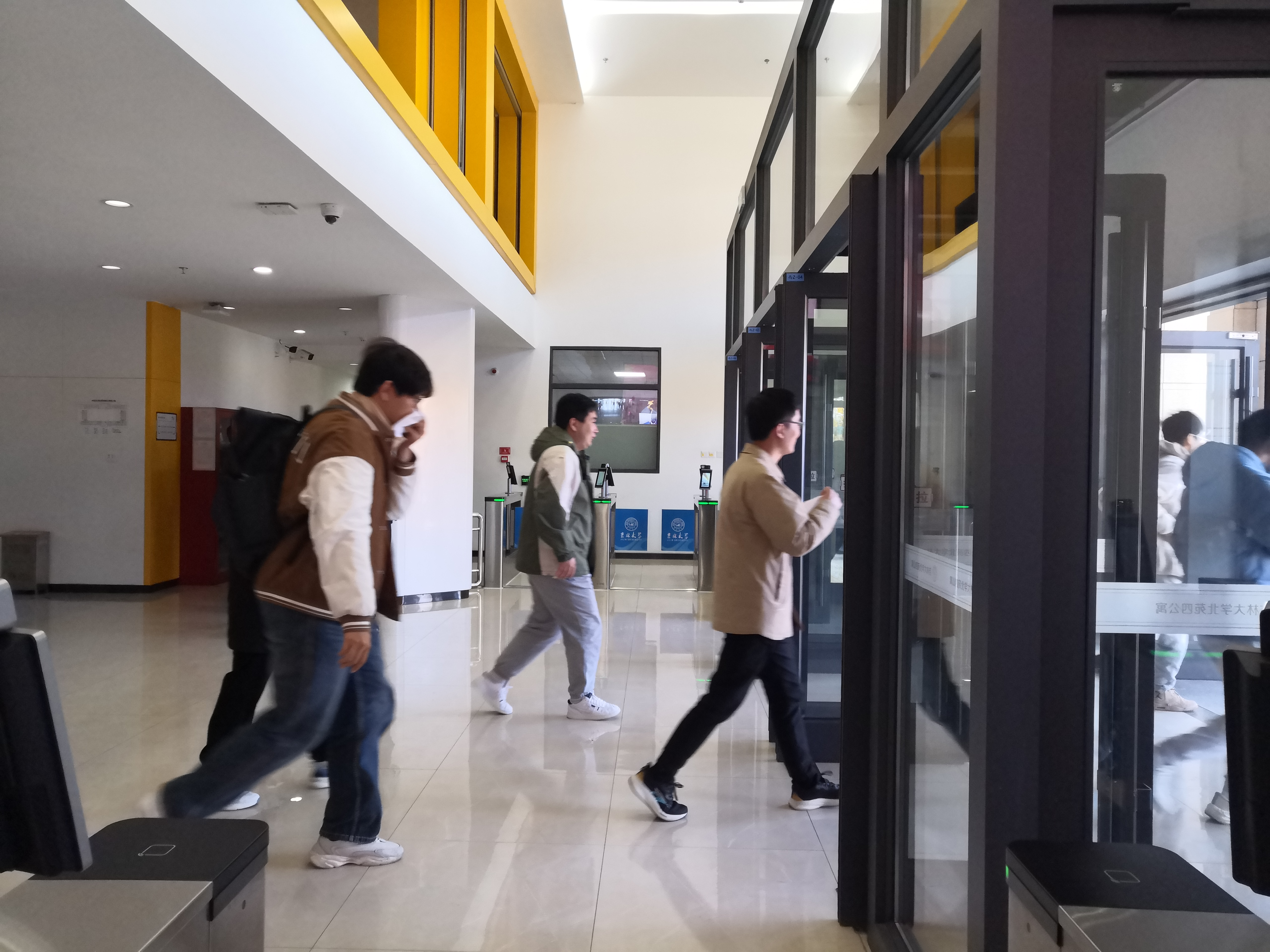 活动第一项,疏散逃生演练。活动工作人员在楼内释放道具烟雾,随后警报声响起。公司在住研究生们在致远物业工作人员的引领下,捂住口鼻,听从安排,沿逃生路线迅速有序撤离至楼下空地。