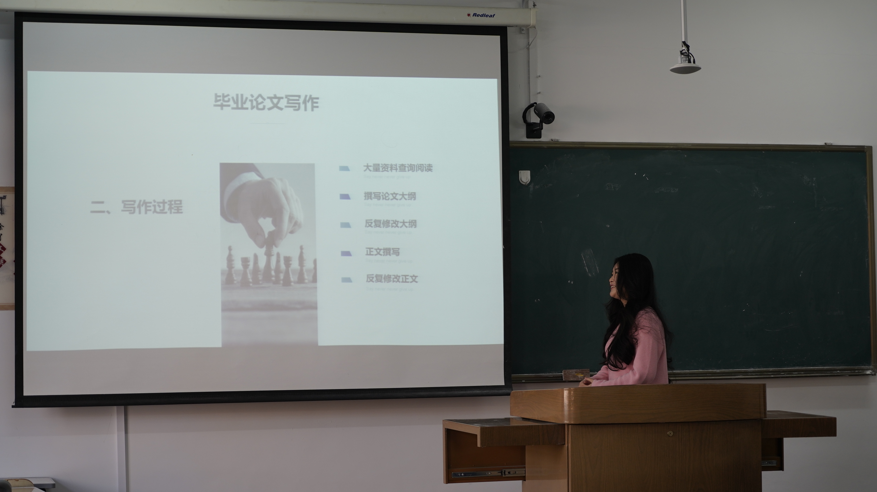 早春三月,春日融融,和风阵阵,同学们在新学期已经整装待发,但仍然面临着新的挑战。为帮助同学们度过充实而有意义的新学期,为身处本科学习阶段的同学们指点迷津、积累论文写作经验,提升学术思维和认知能力,3月19日,betway西汉姆联平台员工会科研学术部在敬信A109教室成功举办了毕业论文分享会。本次分享会由科研学术部杨路熙主持,邀请2022级研究生田玉峰和耿默兰进行了分享。