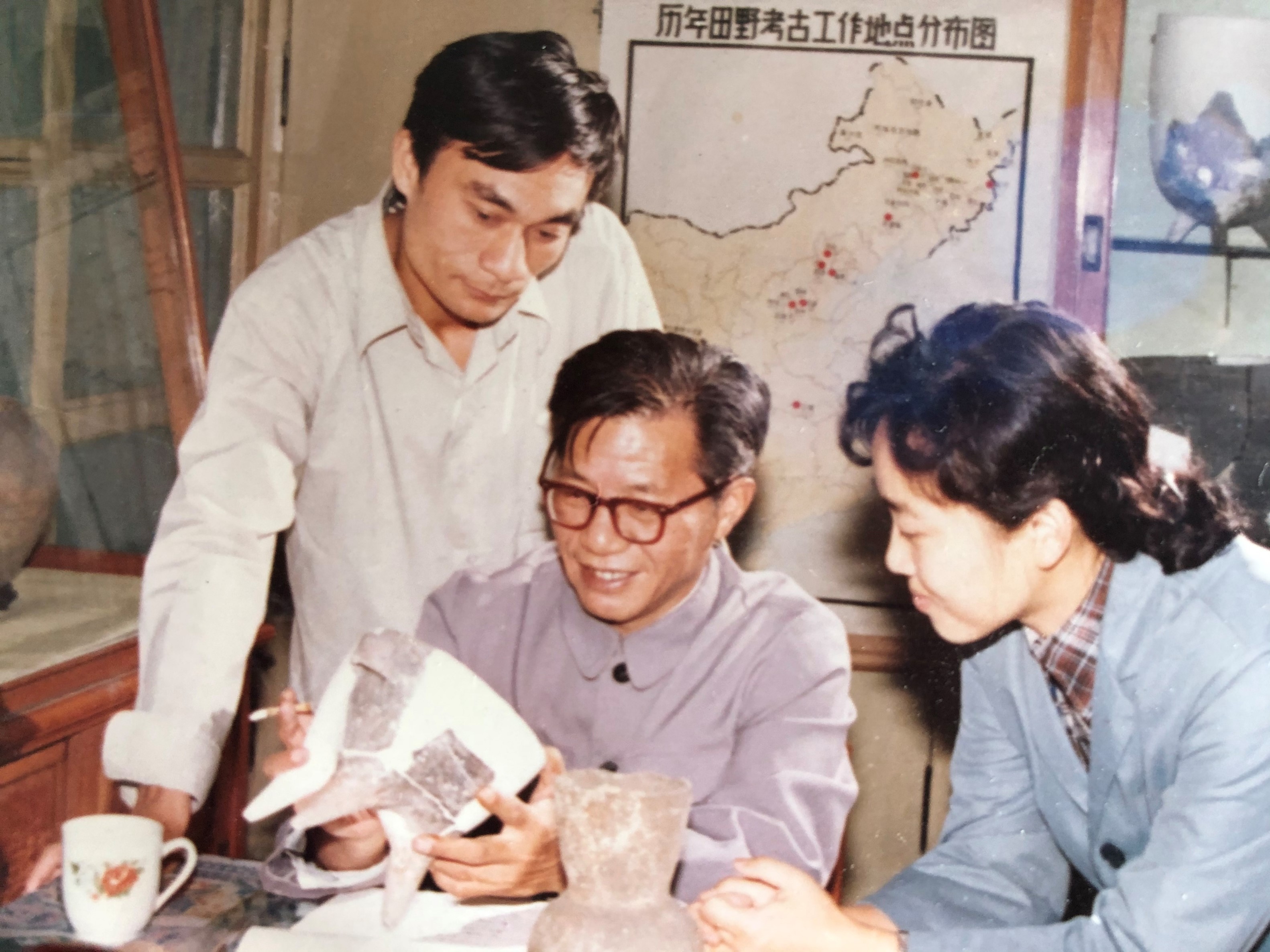 图五 向张忠培先生学习(左起朱永刚、张忠培、杨建华)