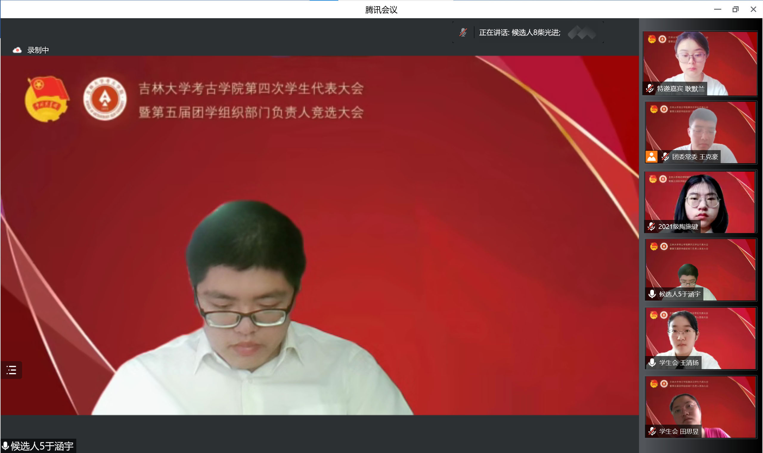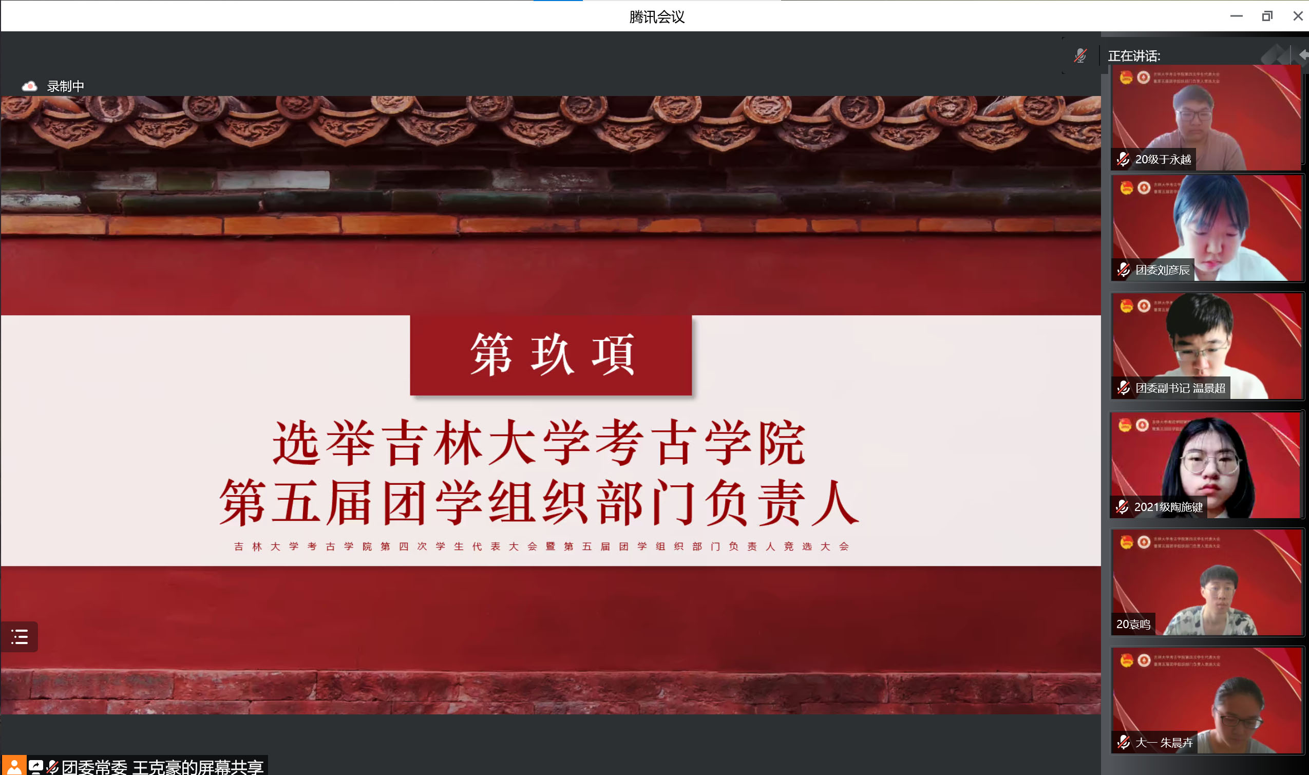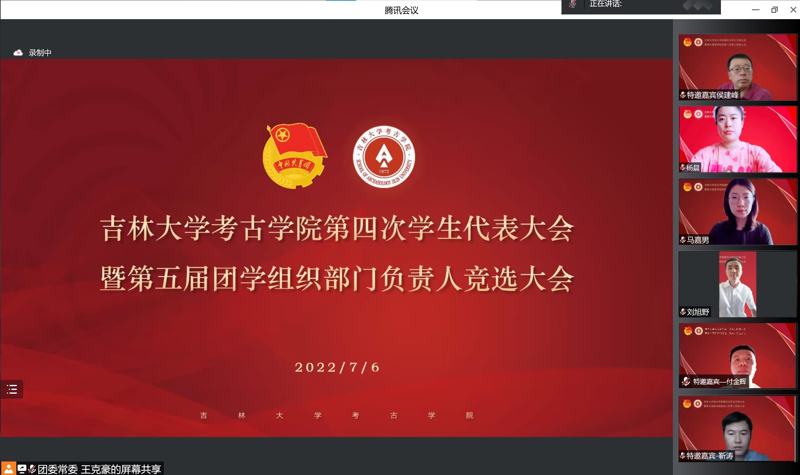 承前启后,继往开来。为进一步加强团学组织队伍建设,更好地服务员工成长成才需要,促进学院团学组织工作更上一层楼,7月6日上午,betway西汉姆联平台团委召开了第四次员工代表大会暨第五届团学组织部门负责人竞选大会,会议采取线上方式举办。考古公司党委副书记兼副经理侯建峰老师,betway西汉姆联平台员工工作办公室主任杨晨老师,betway西汉姆联平台团委负责人马嘉男老师,化学学院团委负责人刘旭野老师,betway西汉姆联平台博士兼职辅导员靳涛老师、付金辉老师,betway西汉姆联平台第二届员工会主席团成员、第五届研究生会主席团成员李明轩,betway西汉姆联平台第三届团委副书记耿默兰,以及团学组织负责人、竞选人和员工代表参加了会议。大会由王清扬、于涵宇同学主持。