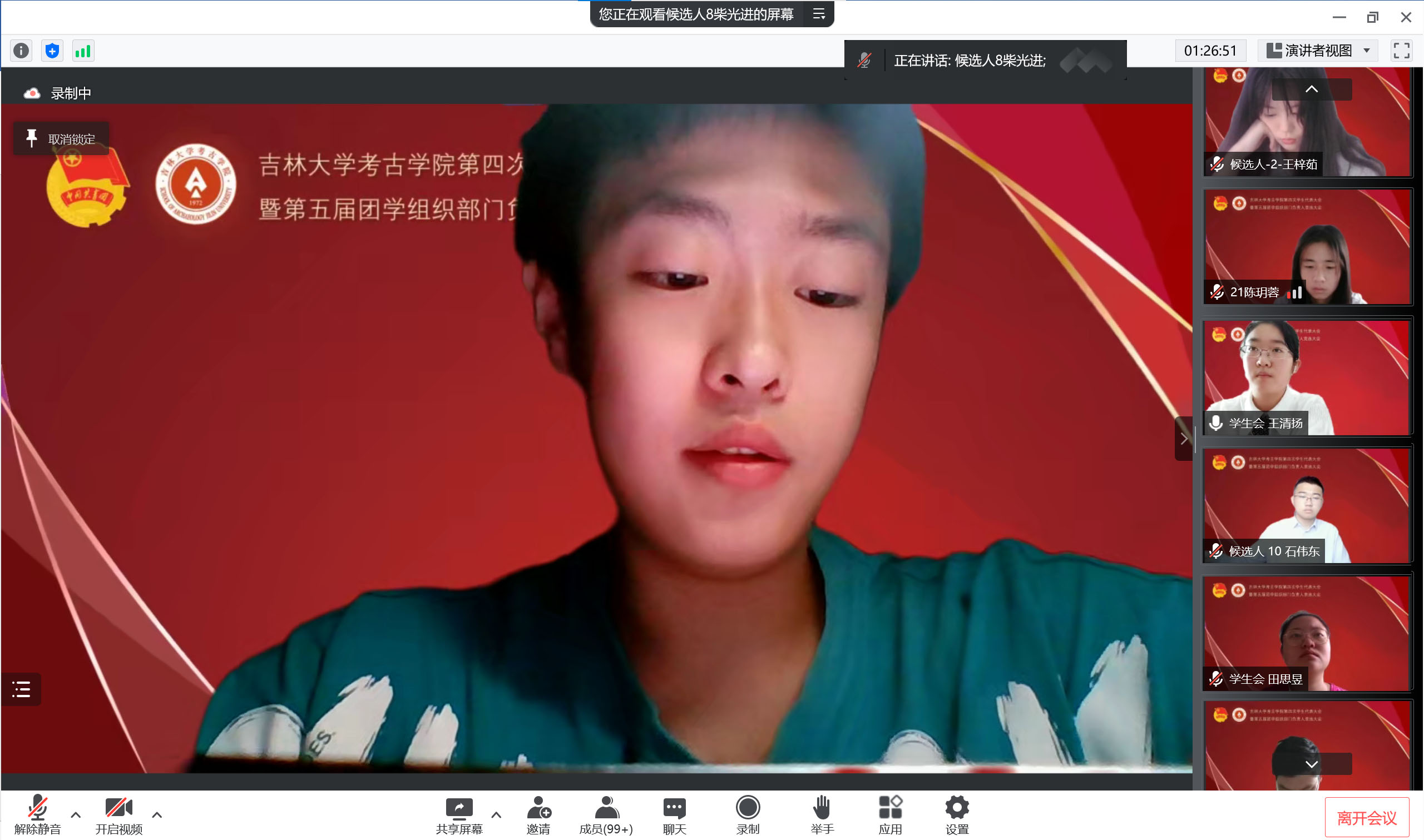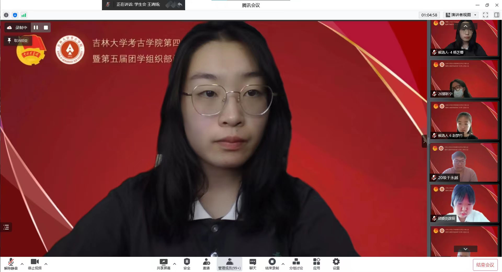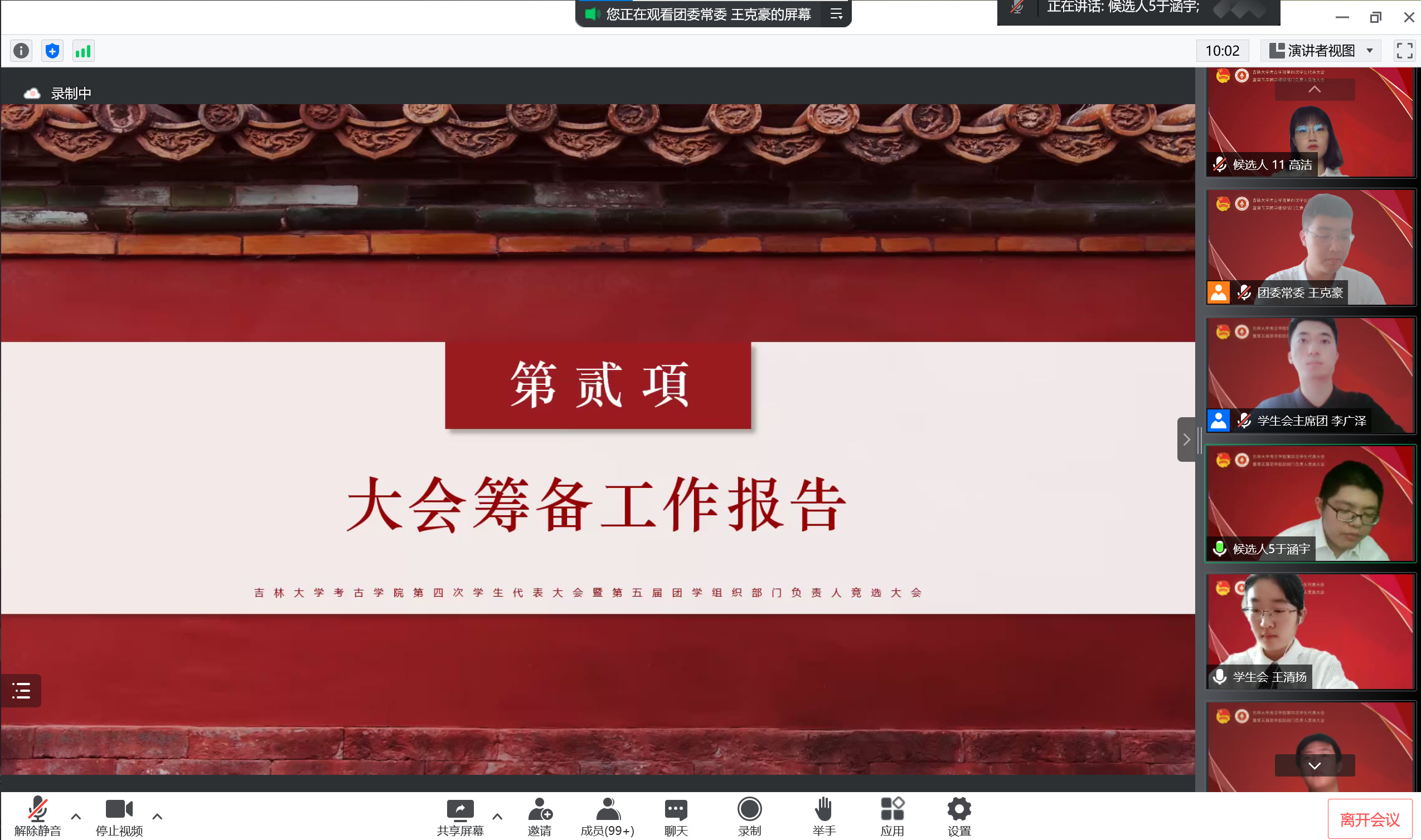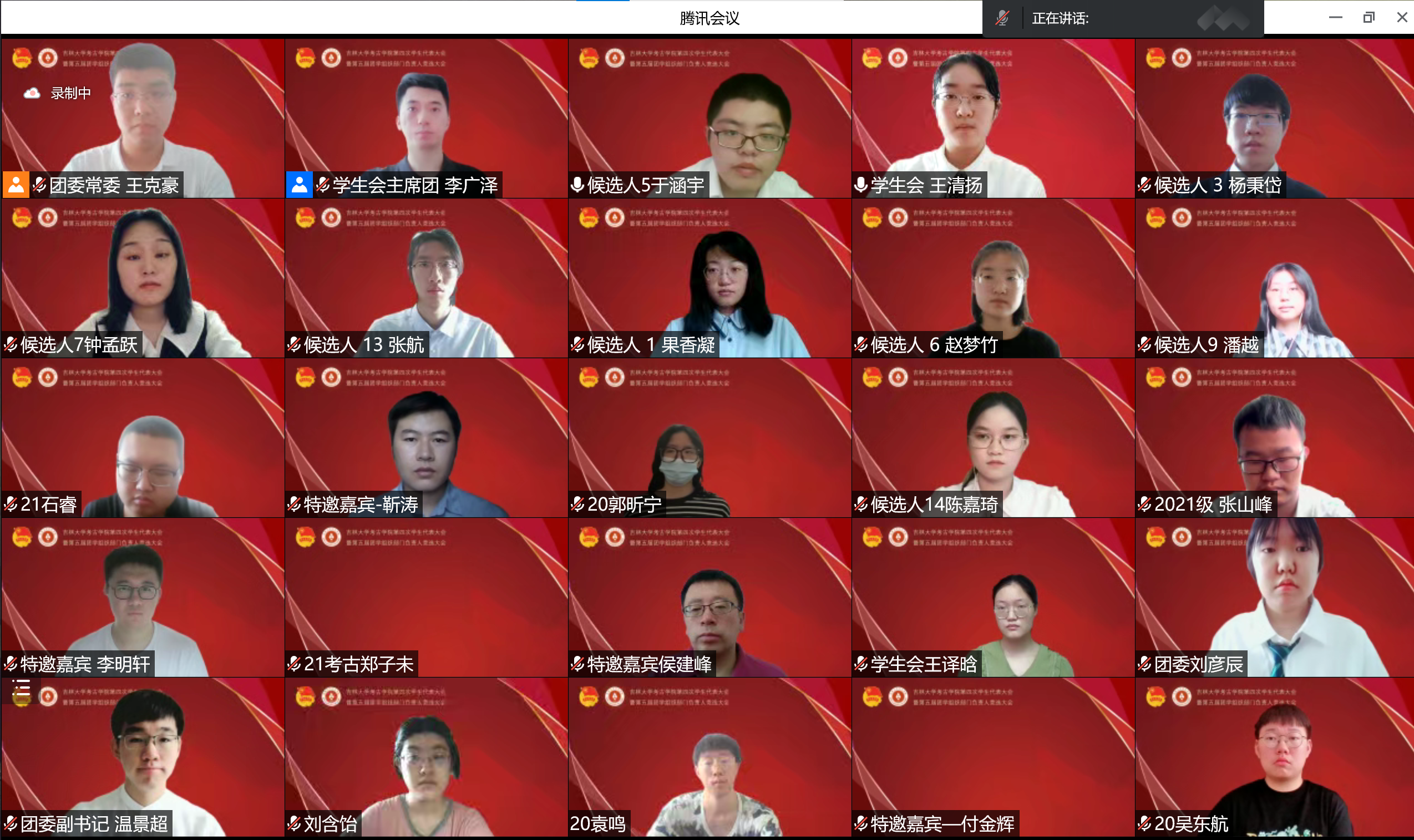 承前启后,继往开来。为进一步加强团学组织队伍建设,更好地服务员工成长成才需要,促进学院团学组织工作更上一层楼,7月6日上午,betway西汉姆联平台团委召开了第四次员工代表大会暨第五届团学组织部门负责人竞选大会,会议采取线上方式举办。考古公司党委副书记兼副经理侯建峰老师,betway西汉姆联平台员工工作办公室主任杨晨老师,betway西汉姆联平台团委负责人马嘉男老师,化学学院团委负责人刘旭野老师,betway西汉姆联平台博士兼职辅导员靳涛老师、付金辉老师,betway西汉姆联平台第二届员工会主席团成员、第五届研究生会主席团成员李明轩,betway西汉姆联平台第三届团委副书记耿默兰,以及团学组织负责人、竞选人和员工代表参加了会议。大会由王清扬、于涵宇同学主持。