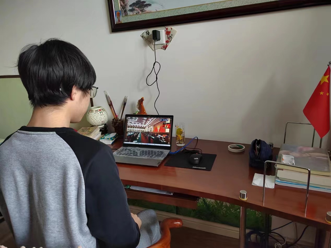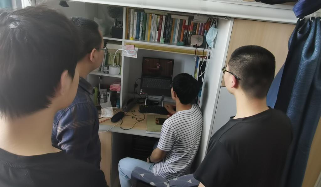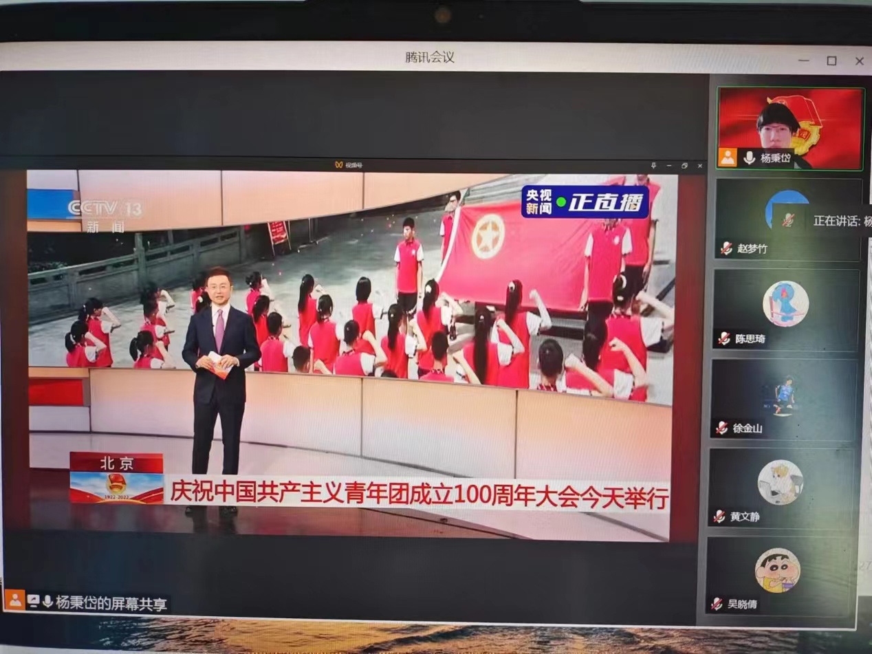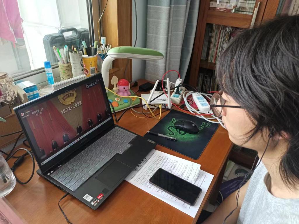 由于受疫情影响,许多同学们在宿舍、家中,或是在返乡的路上收看了此次庆祝大会直播。但是,无论身在何处,都没有影响到团员青年认真学习、积极向上的热情。有的支部以视频方式共同进入在线会议,仿佛置身于大会现场;有的支部在班级群、直播间中建立讨论发言区,共话心得感悟。