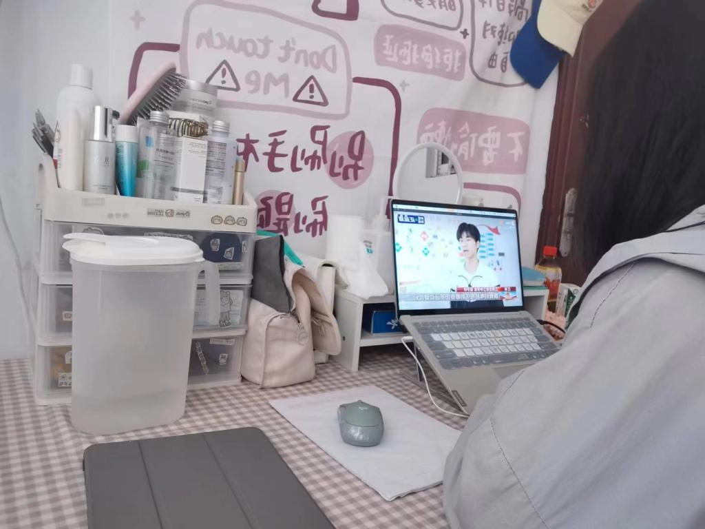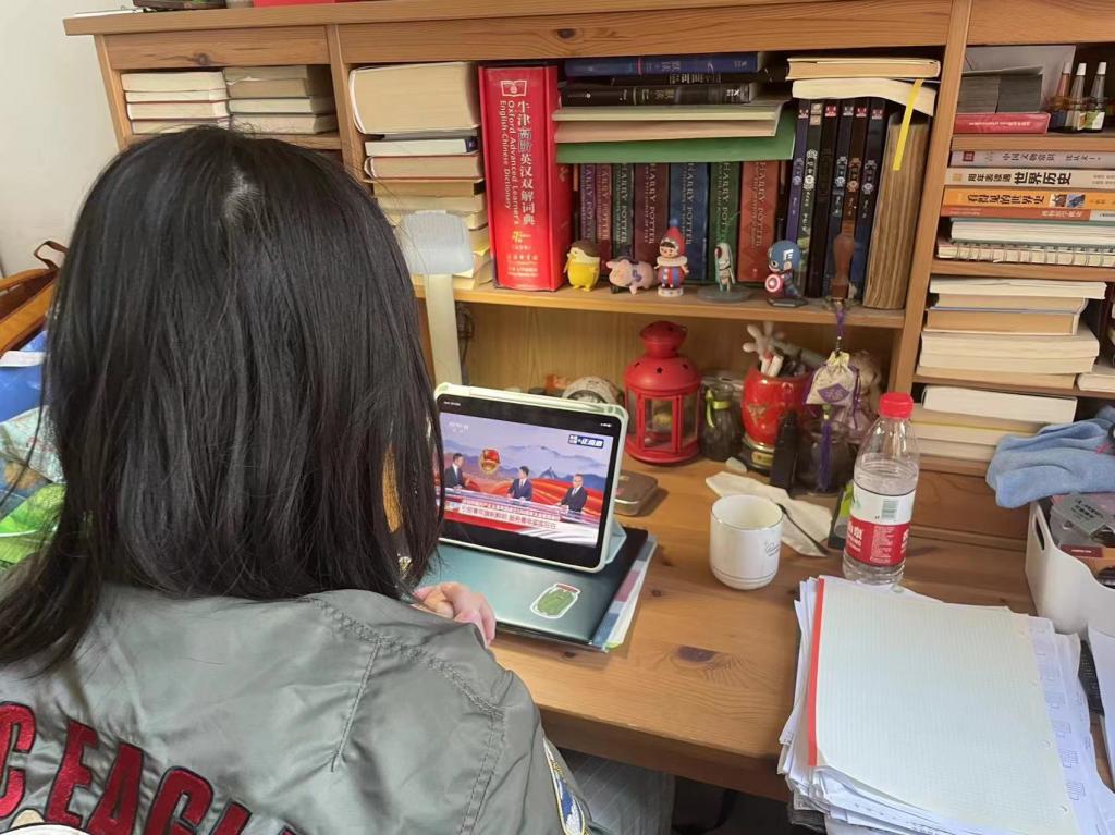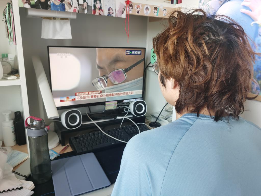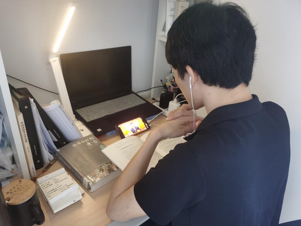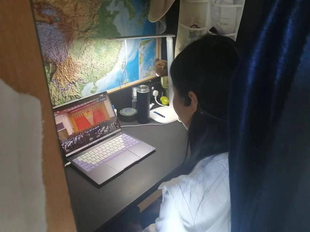 由于受疫情影响,许多同学们在宿舍、家中,或是在返乡的路上收看了此次庆祝大会直播。但是,无论身在何处,都没有影响到团员青年认真学习、积极向上的热情。有的支部以视频方式共同进入在线会议,仿佛置身于大会现场;有的支部在班级群、直播间中建立讨论发言区,共话心得感悟。