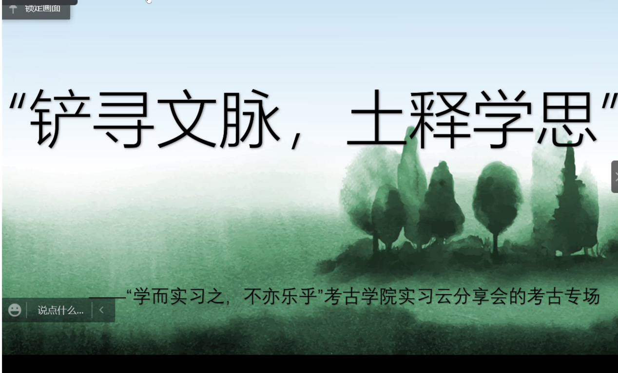 考古专场由唐诗雨同学主持,邀请资历深厚的方启老师与任进成老师作为特邀嘉宾,以及2019级考古学专业的潘思言、白沙平、李广泽、张俊、黄祖森五位同学结合自己的实习经历,分别就相关实习流程、实习生活、实习工作等方面的内容进行分享与交流。