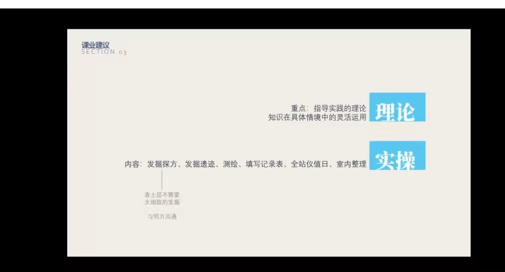黄祖森同学与潘思言同学从不同的角度分享了他们的实习经历和心得。黄祖森认为田野实习记录数据和发掘同等重要,并介绍了实习基地良好的食宿条件。潘思言同学以时间为线,从实习时间安排、生活、课业三方面给出了介绍并分享经验,并在最后表示,田野实习需要踏实认真的态度,需要负责地对待每一项工作。
