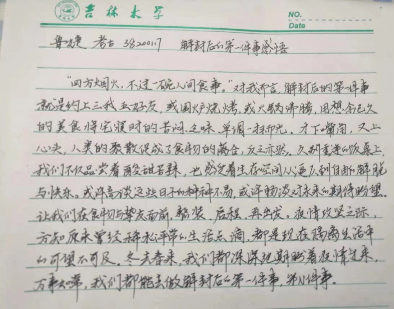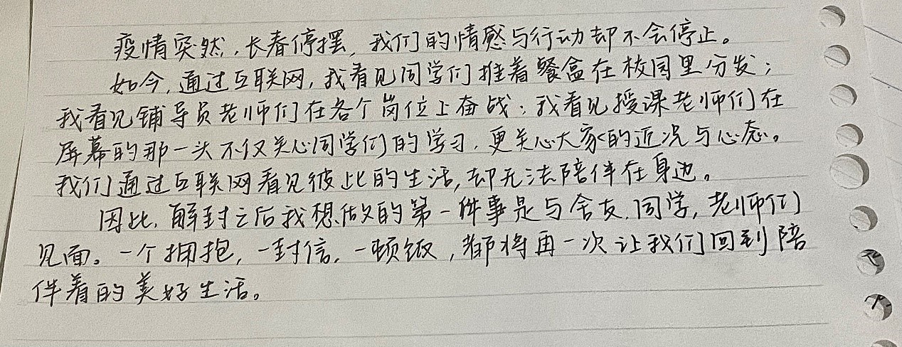 最后,围绕“解封后你想做的第一件事情是什么?”的主题,同学们开展了热烈的讨论,分享了隔离封寝期间的感想和对解封后的美好生活的期许: