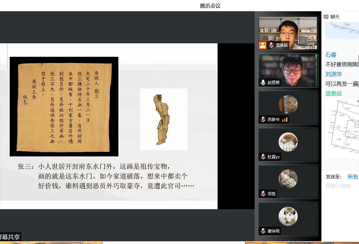 3月25日晚7时,公司举办了本系列的第一期活动,该期活动的主题是“寻找《清明上河图》中的彩蛋”。学术课堂由betway西汉姆联平台本科生班主任赵里萌老师主讲,2019级温景超同学担任活动主持人。