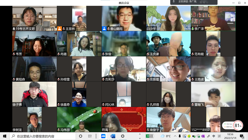 2022年3月14日晚,2019级考古班举办疫情防控主题教育线上班会,会议由2019级考古班班主任林森老师组织召开,团支书温景超同学主持,全体考古班成员参加了本次会议。