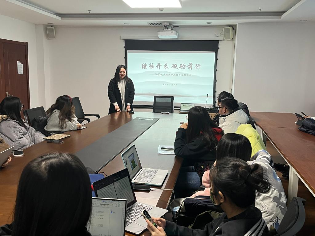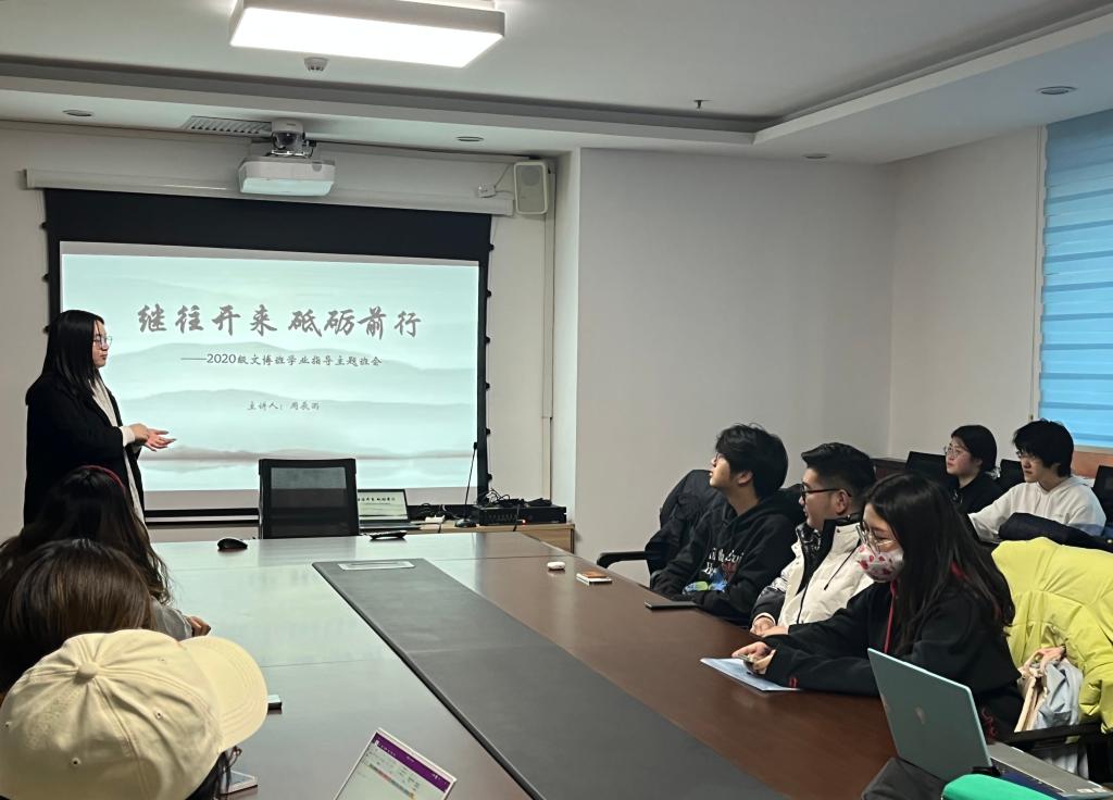 为加强班级学风建设,引导和督促同学们向优秀榜样学习,端正学习态度,明确努力的方向,增强学习动力,12月3日,betway西汉姆联平台2020级文博班举办了学业经验分享交流会,邀请了2018级文博专业周辰雨同学作了主题报告。会议由柴光进同学主持,2020级文博班全体同学参加了会议。