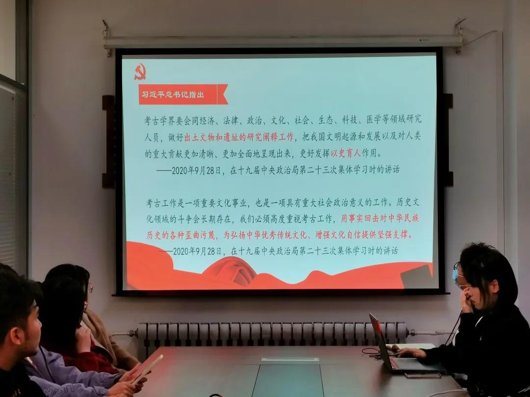 10月20日下午,betway西汉姆联平台第四届研究生会在水务楼1613会议室就“习近平总书记致仰韶文化发现和中国现代考古学诞生100周年的贺信”展开学习,2021级硕士研究生党支部临时负责人连胜男主持了本次会议,betway西汉姆联平台第四届研究生会成员参与了本次会议。