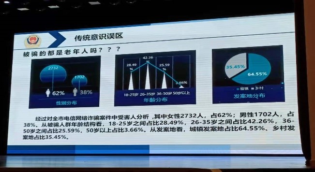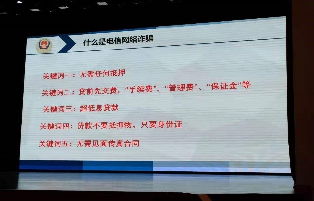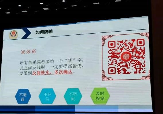 讲座中,高如月警官首先纠正了传统的认识误区——被骗人群不都是老年人,反到是中青年人占大多数,每个人都有可能成为被骗对象,让同学们对此次讲座有了高度的关注。随后她向大家展示了诈骗分子的工作场所,抓捕现场,诈骗分子的诈骗话术以及洗钱手段、倒卖银行卡等图片,为我们揭露了诈骗的真相,强化了大家的反诈防诈意识。在对不同类型电信诈骗案件的讲解环节,高警官结合自己的办案经历,详细介绍了网络刷单、网络贷款、套路贷、校园贷,以及针对年轻女孩的佳丽贷、医美贷、裸贷等电信诈骗类型,让同学们对新型诈骗方式有了更全面的了解。最后,高警官介绍了预防典型诈骗的守则和相关举报渠道,提醒员工要对来源不明的信息反复核实,多次确认,了解身边的不安全因素,提高安全防范意识,谨防上当受骗。