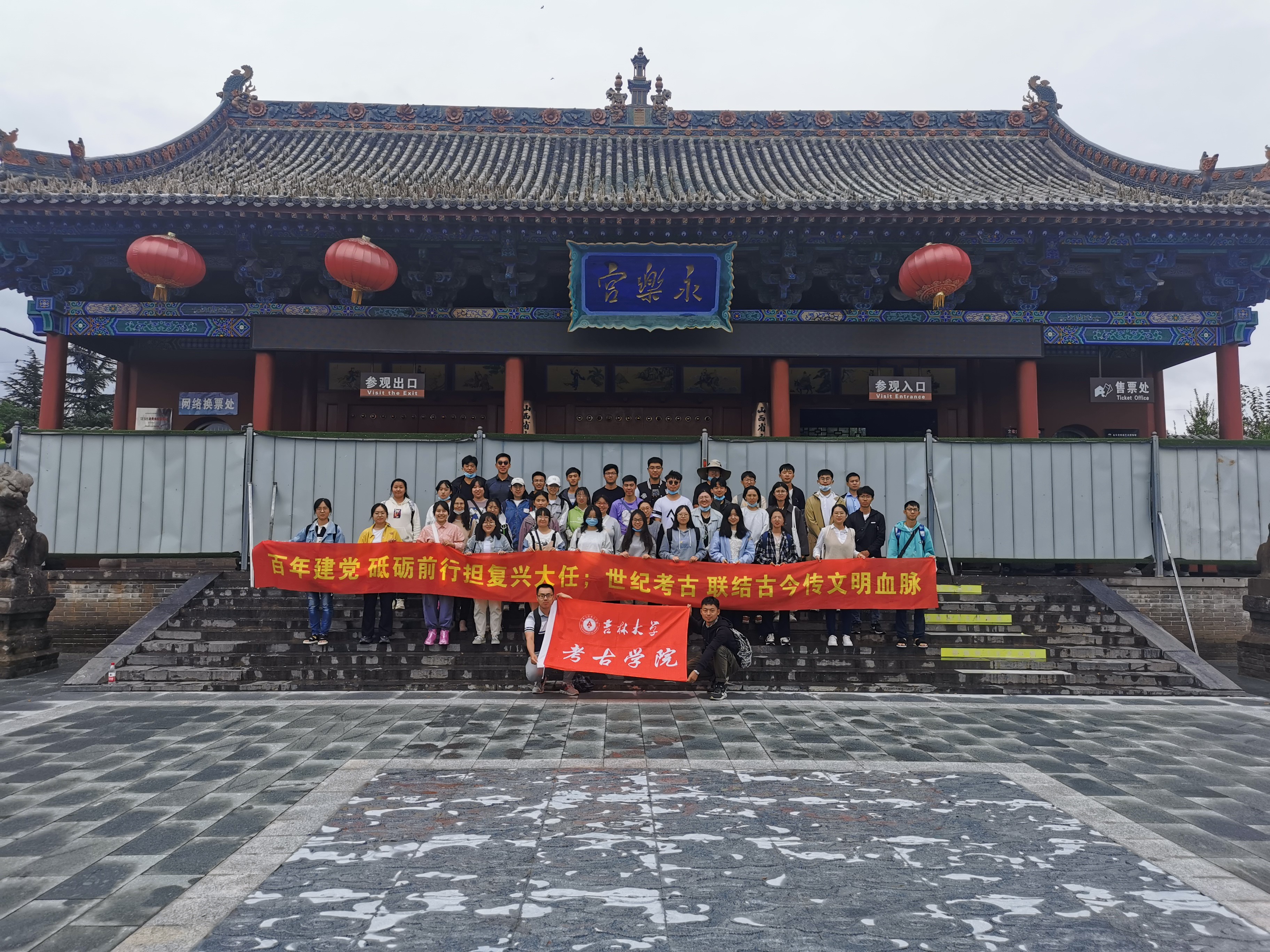 9月28日下午,实习师生来到了本次活动的最后一站全国重点文物保护单位——永乐宫。永乐宫始建于元代,属全国重点文物保护单位。永乐宫的壁画满布在四座大殿内,壁画总面积达960平方米,堪称稀世珍宝。1959年,因社会主义建设需要而修建黄河三门峡水库,永乐宫进行了整体搬迁。从1957年制定搬迁方案起,到1965年修复所有壁画,再到1966年各大殿的扫尾工作,永乐宫搬迁历时九年。在这个过程中,中国专家摸索出一套完整的壁画移修方案,给历史文物搬迁提供了一个范例,在世界上都堪称一大奇迹。迄今半个世纪过去,壁画仍然完美清晰。