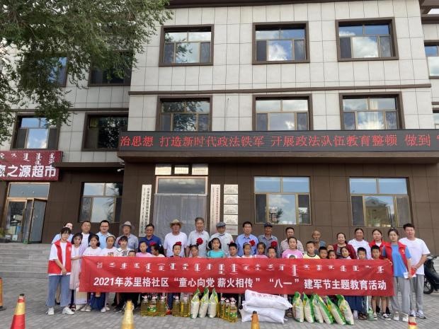 7月29日,李丹协助社区举办了“2021年苏里格社区‘童心向党,薪火相传’八一建军节主题教育活动”以及“《退役军人保障法》进社区新时代文明实践活动”。她带领同学们聆听退伍军人的革命事迹,为退伍军人佩戴红花,表演诗歌朗诵。一朵朵亲手折叠的大红花,一首首精心排练的诗歌朗诵,都汇成了同学们对军人们的最高献礼。