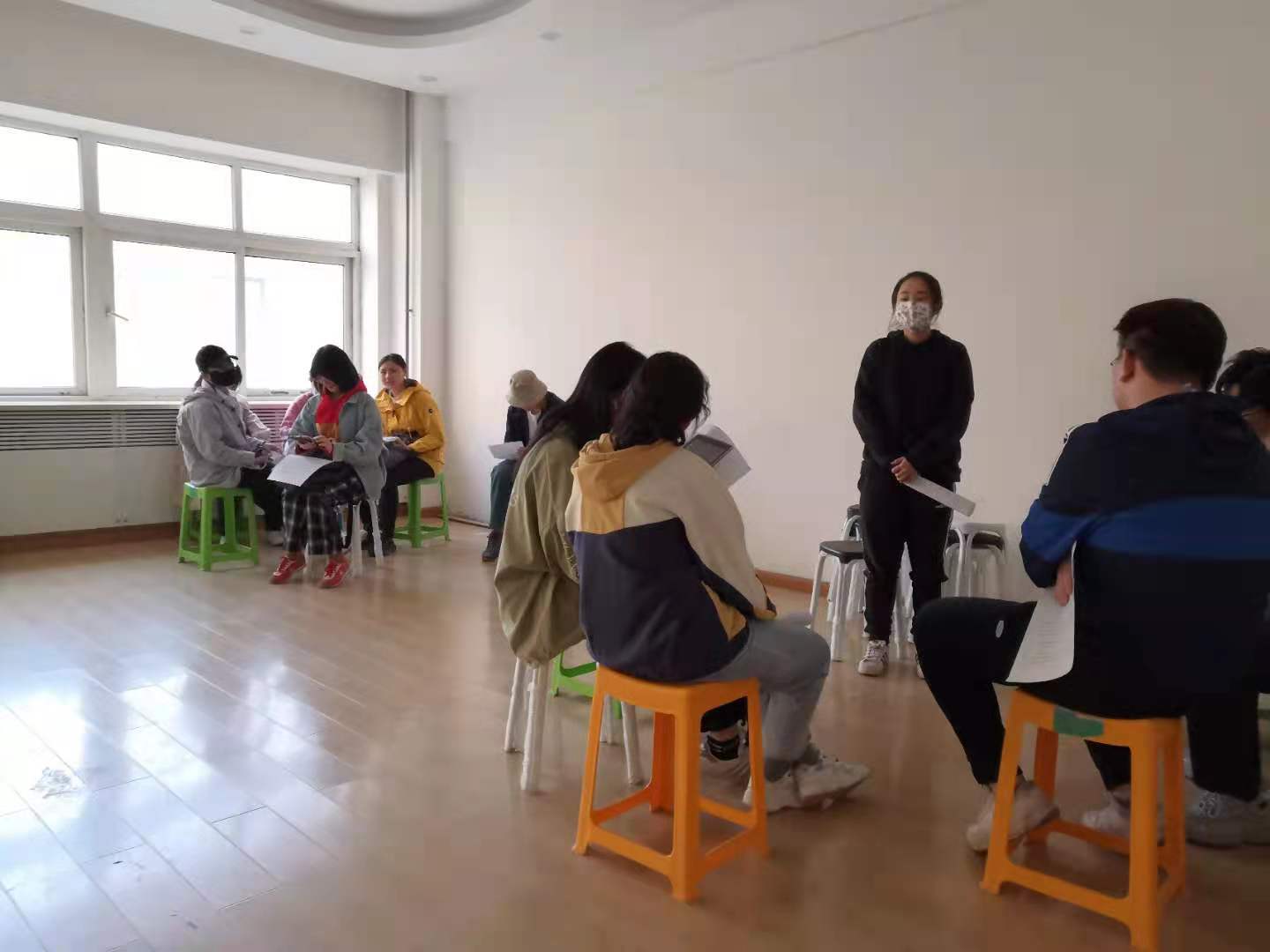 本次主题班会活动进程共分为三部分:热身环节——分为同学们依次用不同定语做一句话简介部分和“报纸拔河”小游戏两个小环节;正式讨论——同学们以分组的形式,围绕亲情、友情等话题展开组内沟通;结束环节——话剧展示。在正式讨论环节中,同学们被随机分为四组,并就给出的“假期期间与父母相处方式”、“自身理想的交友模式”等话题发表了自身的看法。通过交流增进了同学们对彼此的认识,加强了同学们心灵之间的沟通与联系。同时,随话题分发的关于人际关系的小测验也使同学们对于自己在人际关系中的定位更加清晰,明确了自身在人际交往中的主/被动性。在活动的最后,二班同学们一起欣赏了方旭、徐子姣同学合作带来的话剧,话剧展示了关于两人从初次见面到结识的经过,让大家了解到友谊是在心灵的自然沟通中产生的。活动全程约两小时。
