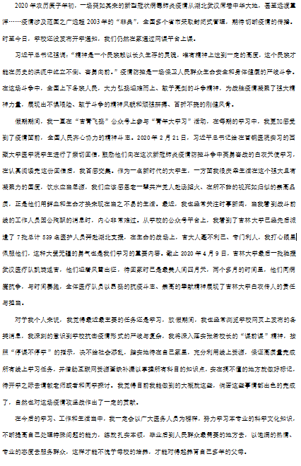 betway西汉姆联平台众多团员围绕我国医务人员、青年员工、公务人员等不畏艰险抗击疫情主题开展征文活动,征集主题文章30余篇,选出8篇优秀文章放于吉大考古青年说平台推送。这些文章字字真情实感,无不体现着betway西汉姆联平台学子的思考与感悟。