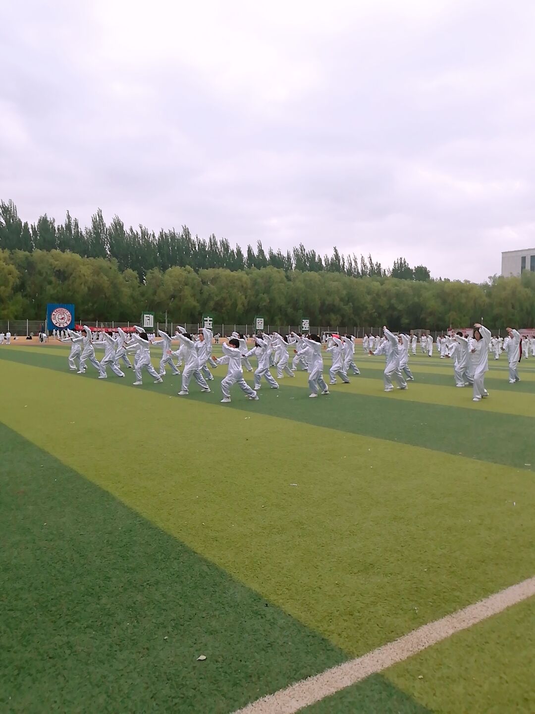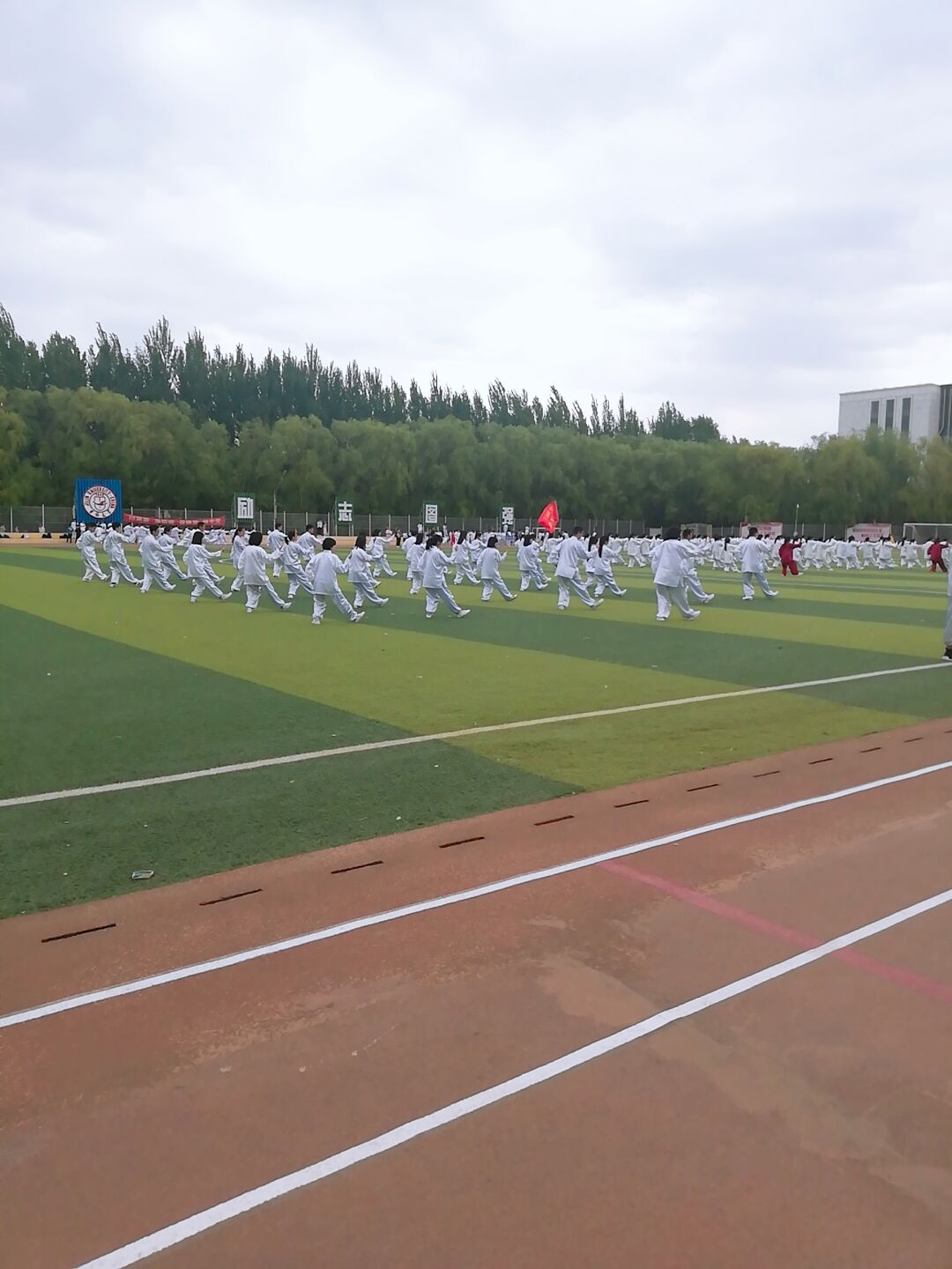 比赛于上午八点在体育场中心足球场正式开始。两支队伍为一组,同时进行比赛,接受裁判的检验。位于第七组的betway西汉姆联平台选手们身着白色太极服,整齐划一地列阵入场,向看台上的裁判与观众行抱拳礼,高喊出“古史长往,溯流四方。长浪有尽,少年无双”的口号。随后,音乐响起,运动员们铭记平日训练时教练的指导和自己的心得体会,依循节奏、彼此配合着打出一招一式,圆满完成了比赛。所有参赛组结束比赛后,集中在主席台下,聆听了裁判员老师对本次比赛的评点与总结。最后,大家不顾参赛的辛苦,进行了集体合练,为将于不久后召开的运动会上的表演作准备。