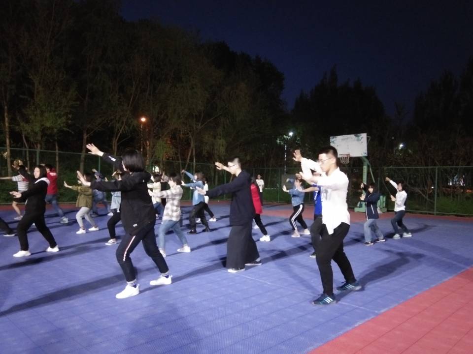 2019年5月11日晚上,betway西汉姆联平台于篮球场开展了运动会的太极拳团体项目的训练活动,活动的主要内容是对参加太极拳团体项目的同学配乐进行训练,并进行细节之处的纠正。2018级31位同学、2017级部分师兄师姐参加。