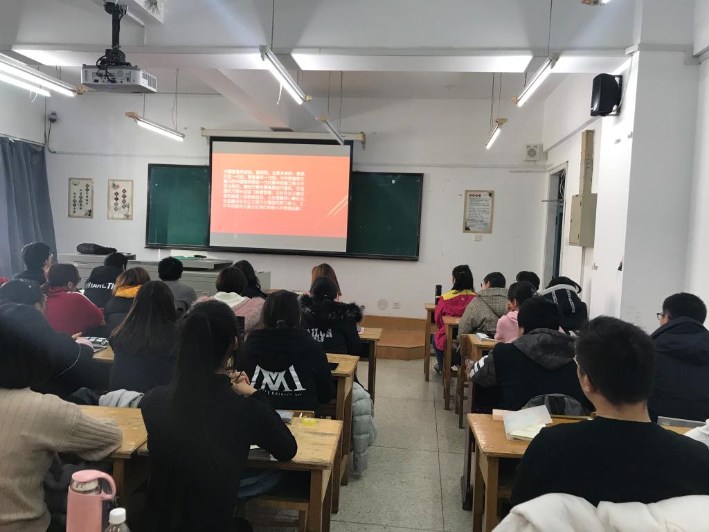 在活动中,201801团支部团支书耿默兰首先向一班同学讲解了中国梦的含义,而后组织同学观看习近平讲述伟大中国梦,畅谈民族复兴等有关中国梦的视频。同学们认真观看并记录下所思所想。最后耿默兰同学提出了自己对于践行中国梦的看法,引发了同学的思考。