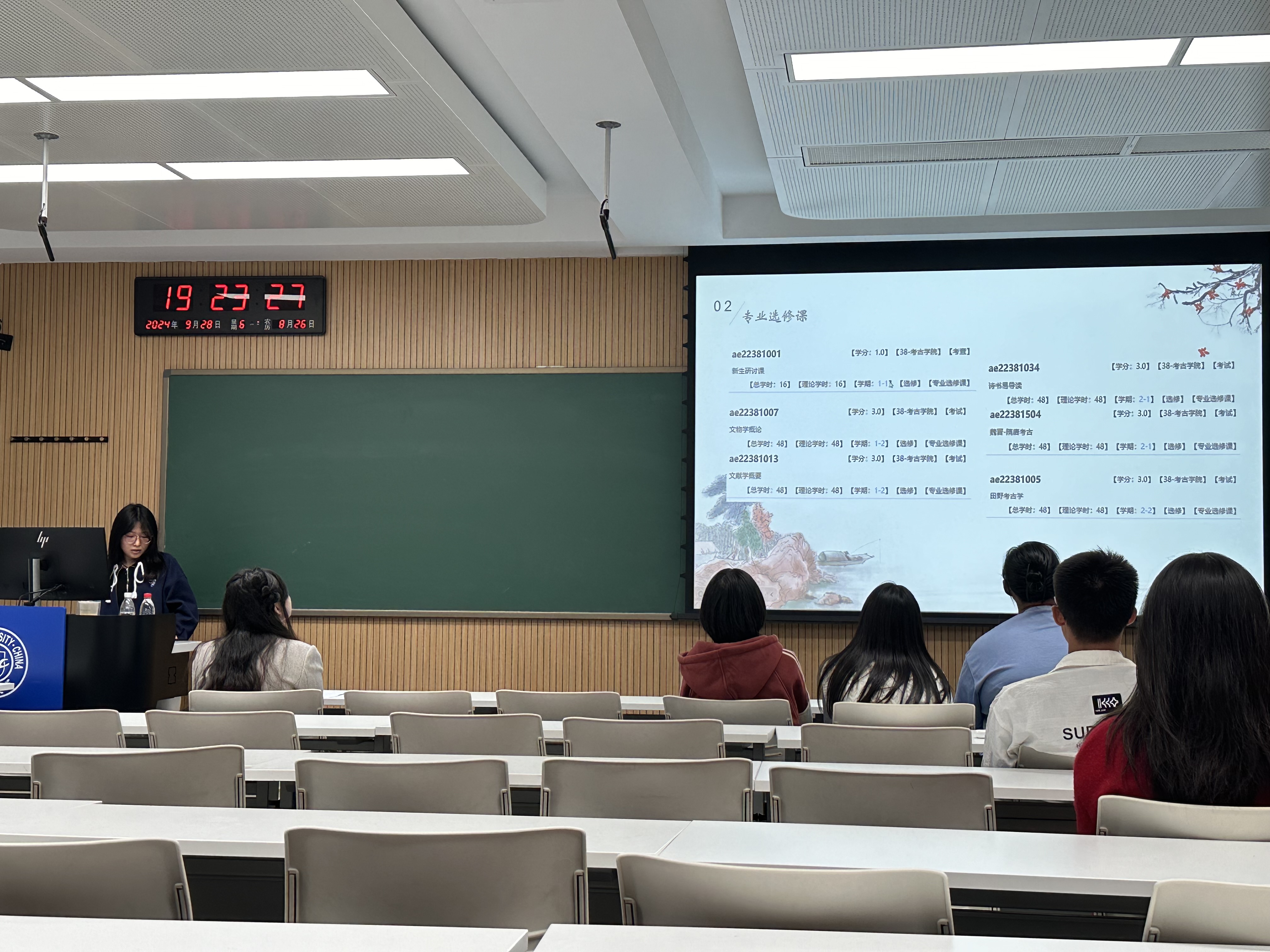 元誉萱同学从文博专业角度出发,为同学们详细介绍了文物与博物馆学的相关课程。她倾囊相授,热情详尽地分享了具体的学习方法、复习归纳方法及课后阅读方法,并细致分享了专业相关的课外实践活动,鼓励同学们积极面对新环境新挑战。针对如何平衡学习与课余活动的问题,她建议以学习为本,保持精力充沛,充分利用时间,以享受的心态参加课余活动。她的分享为刚刚步入大学的新生们提供了宝贵参考。
