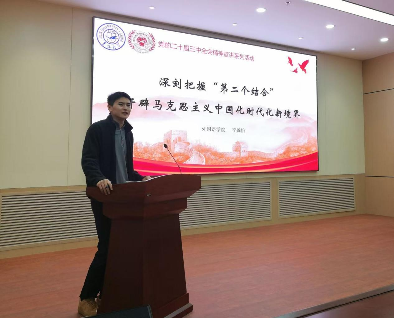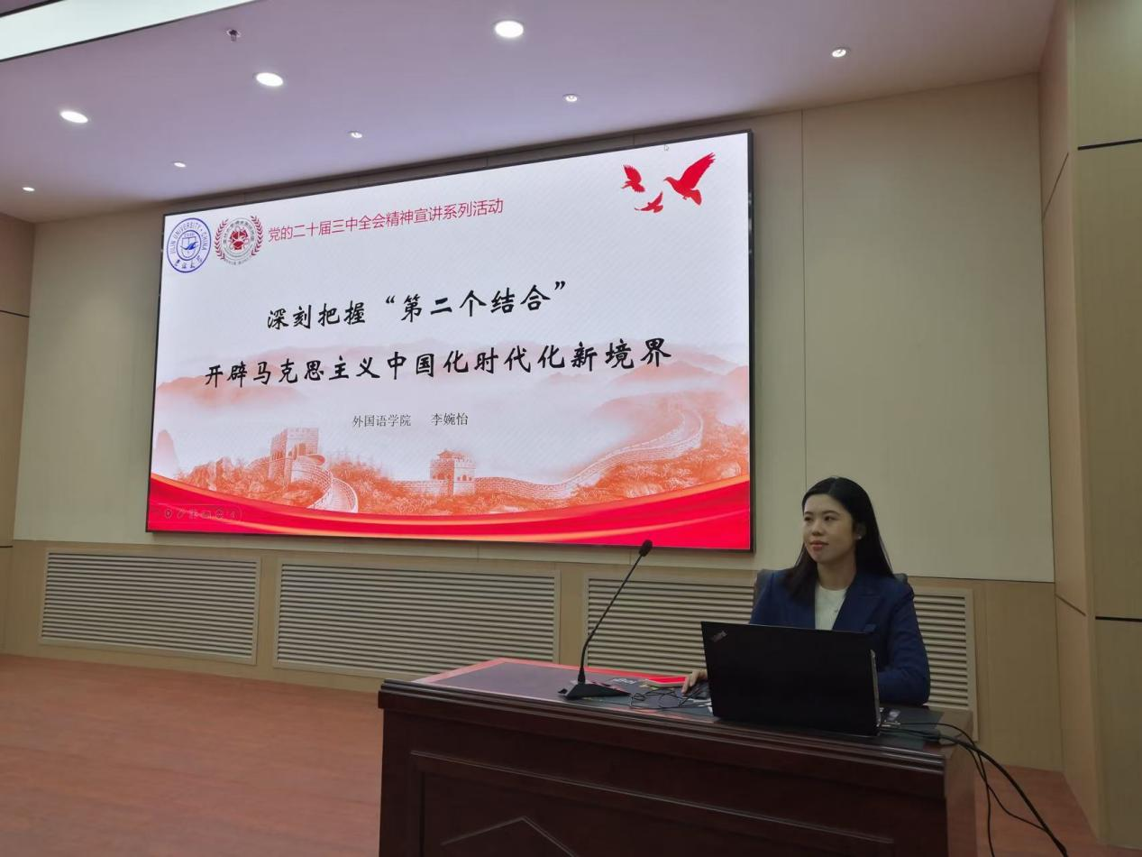 为宣扬党的“第二个结合”重要精神,让党的时政思想活跃在青年心中,落实在学子行中,使“第二个结合”精神深入人心,成为吉大学子求实创新的思想引领,2024年11月26日,betway西汉姆联平台邀请betway西汉姆联平台博士生讲师团作党的二十届三中全会精神宣讲活动。本次宣讲活动于上午9点在betway西汉姆联平台正新楼一楼报告厅举行,由betway西汉姆联平台外国语学院博士研究生李婉怡担任主讲人,公司研究生辅导员依德日贡老师主持,betway西汉姆联平台、古籍研究所研究生参会听讲。