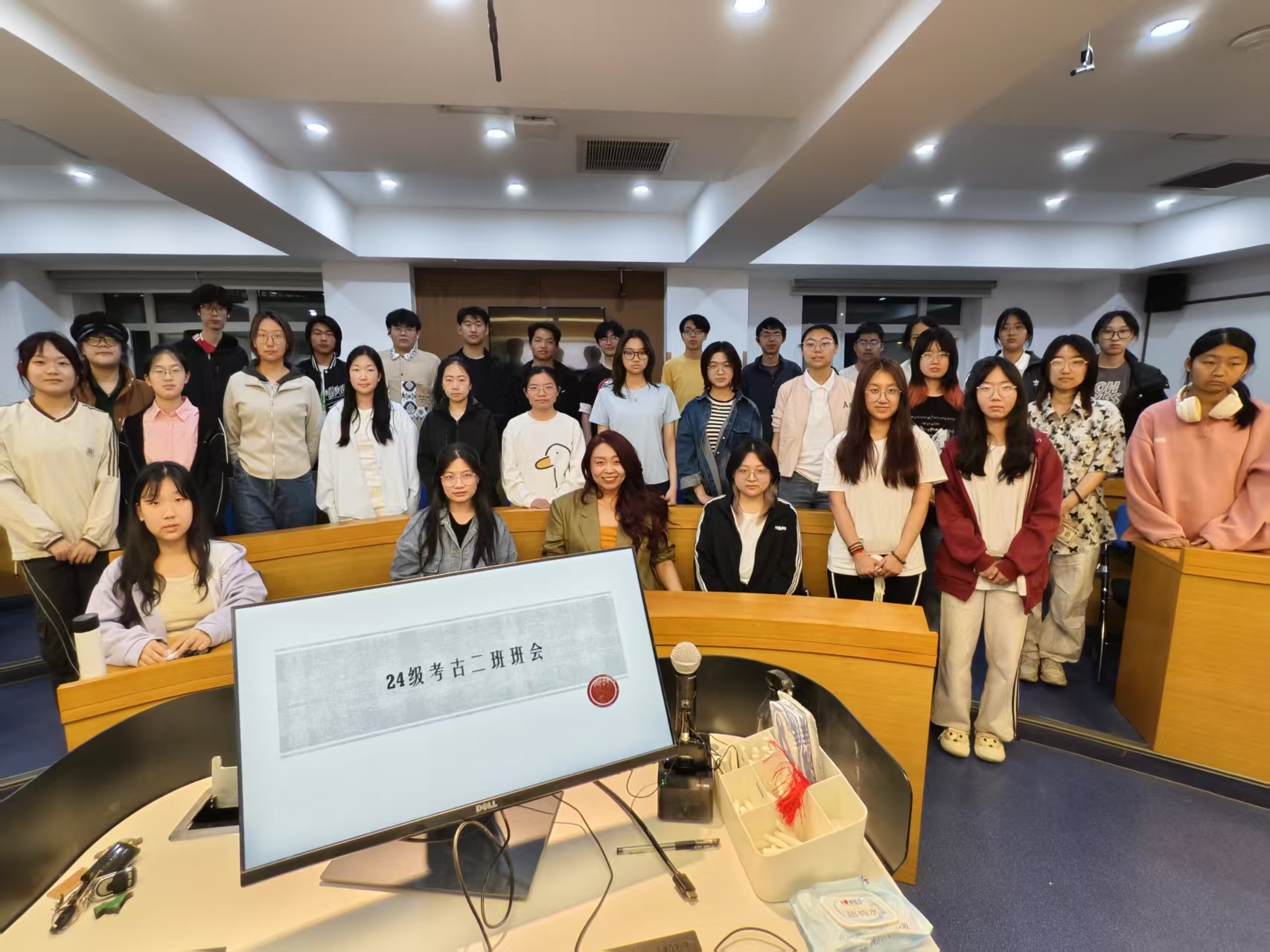 谢却海棠飞尽絮,困人天气日初长。为增进师生交流,做好班级建设,促进同学们深入了解文博行业前沿与实践,2025年5月16日,2024级考古2班于逸夫教学楼202室开展文物保护科普主题班会,班主任冯楠老师、辅导员马嘉男老师和考古2班全体同学参加,会议由班长孙凤涓主持。