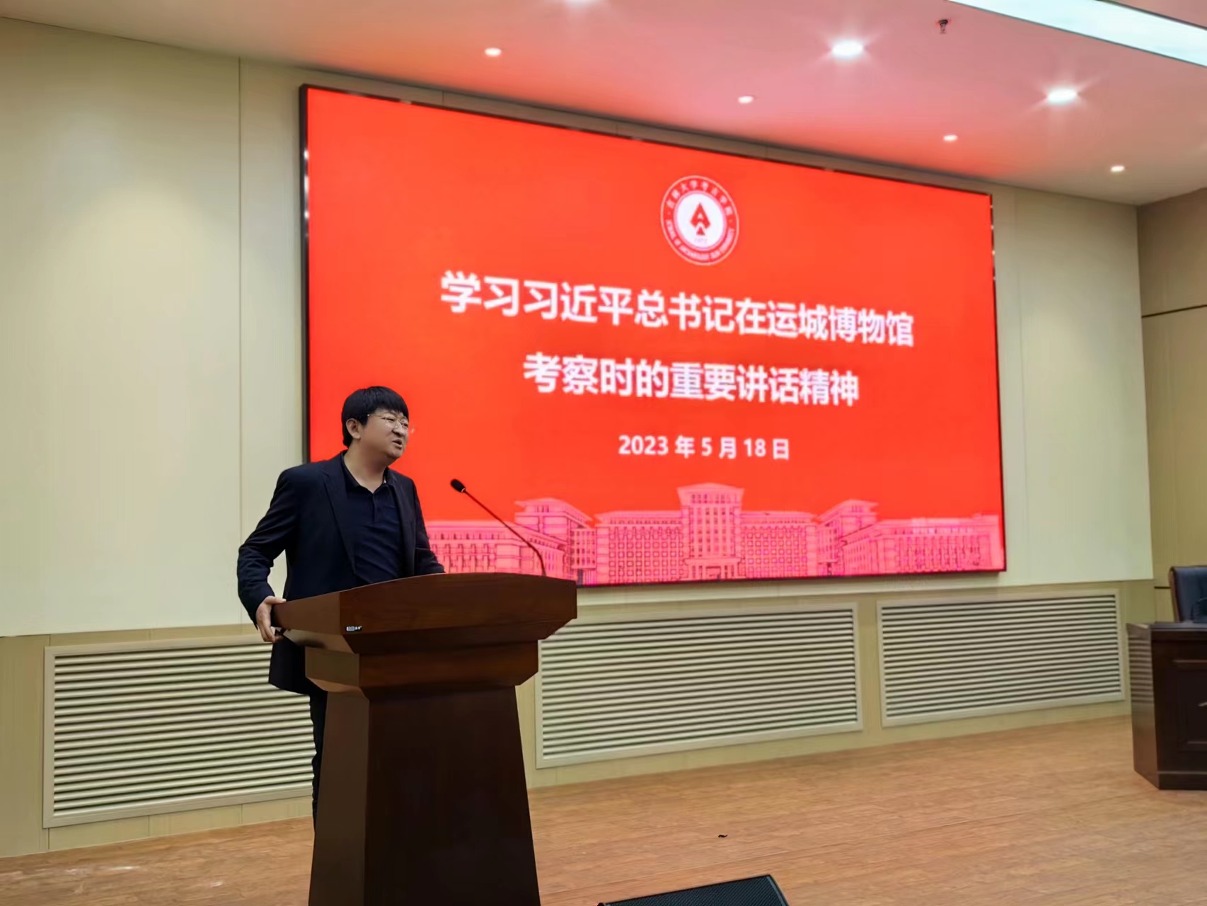 5月18日中午betway西汉姆联平台本科生党支部开展联合学习,学习5月16日下午习近平总书记考察运城博物馆的重要讲话精神。会议由公司党委书记王巍主持。betway西汉姆联平台教工党支部支委、青年教师陈醉带领大家重温习近平总书记考察运城博物馆时的重要讲话精神。公司研究生院学位办主任、betway西汉姆联平台教师段天璟教授结合betway西汉姆联平台夏县田野考古实践基地建设过程,与全体同学分享考古发现实证了我国“百万年的人类史、一万年的文化史和五千多年...